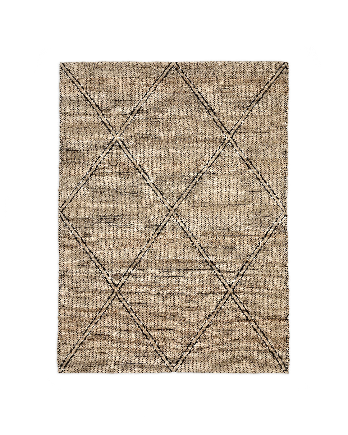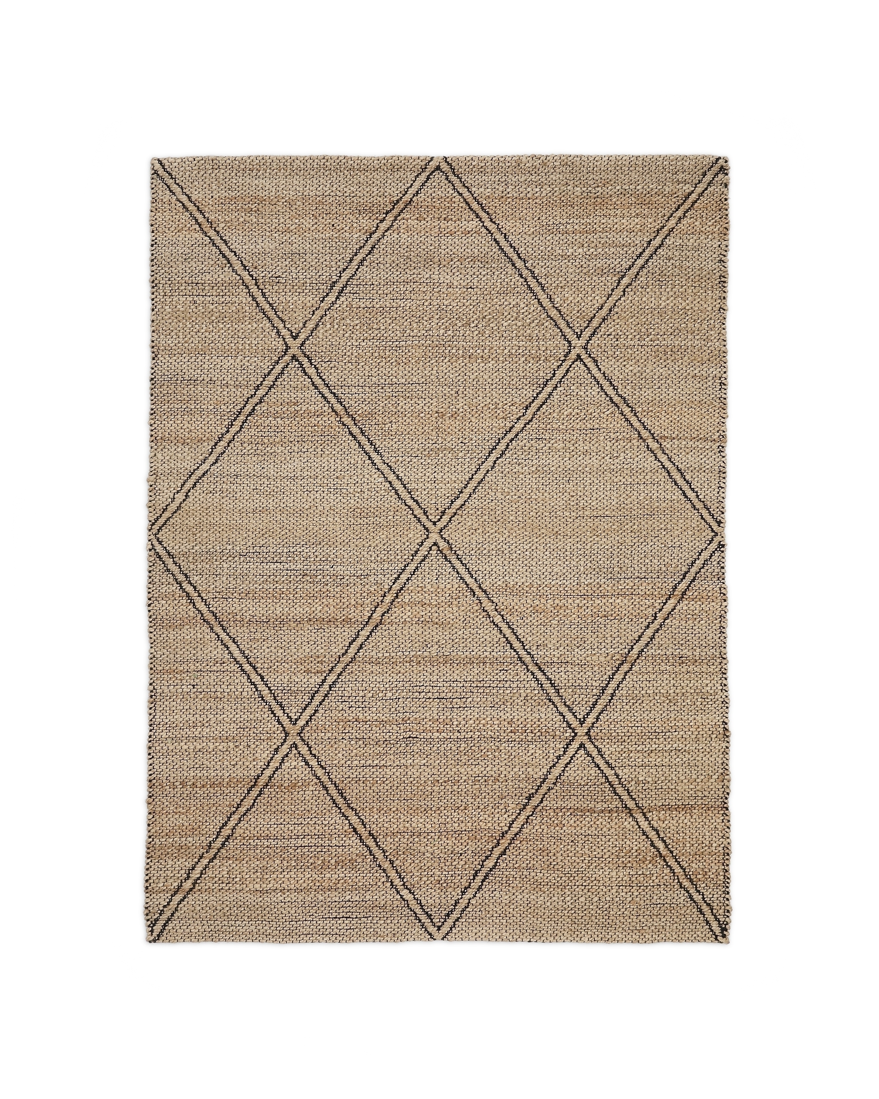 Ковер имеет прямоугольную форму. Он сплетен вручную из натурального джута, поэтому каждое изделие обладает своим уникальным цветом и нюансами фактуры.