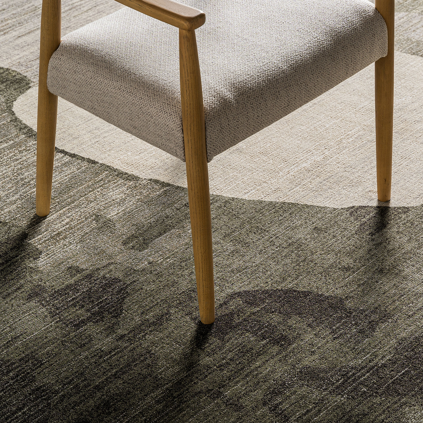 Классический ковер Lea, изготовленный из полиэстера в оттенках зеленого и бежевого.