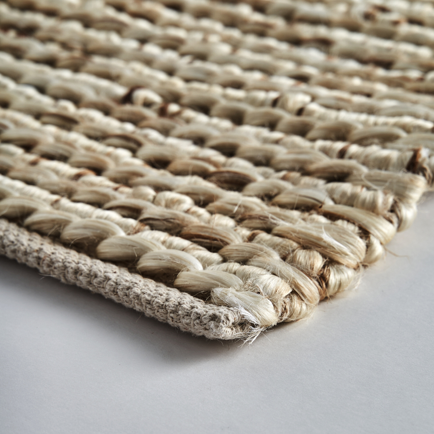 Ковер из берилла, бежевого цвета, в классическом стиле. Изготовлен из джута в сочетании с хлопком и натуральным волокном.