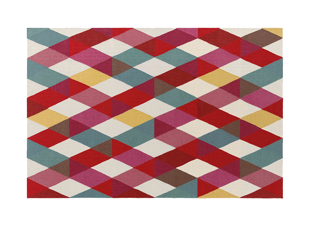 Компания HAPPY создает набор прозрачных пленок из косых лент, которые накладываются друг на друга. В этом новом килиме нейтральные цвета чередуются с более насыщенными, которые оттеняются разными тонами и создают ощущение глубины. Ярко выраженный графический характер HAPPY свидетельствует о пристрастии Сандры Фигеролы к геометрическим узорам, а также о ее мастерстве владения цветом.