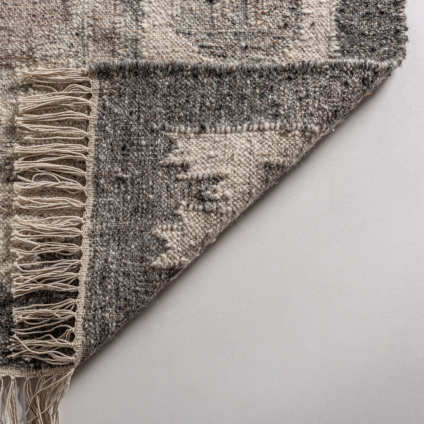 Ковер Kiara, серый/кремовый, классический стиль. Изготовлен из шерсти в сочетании с хлопком и натуральным волокном.