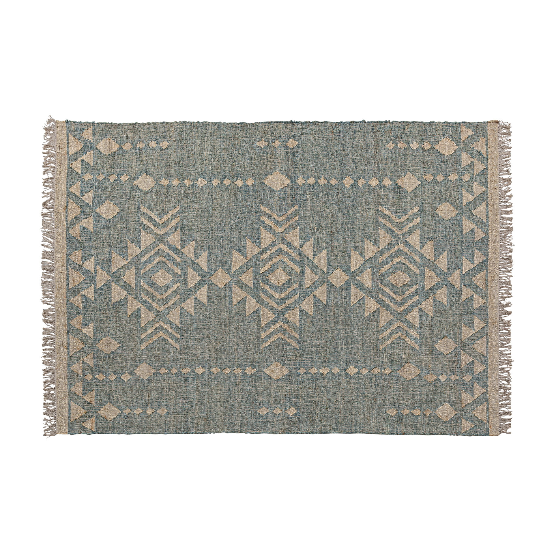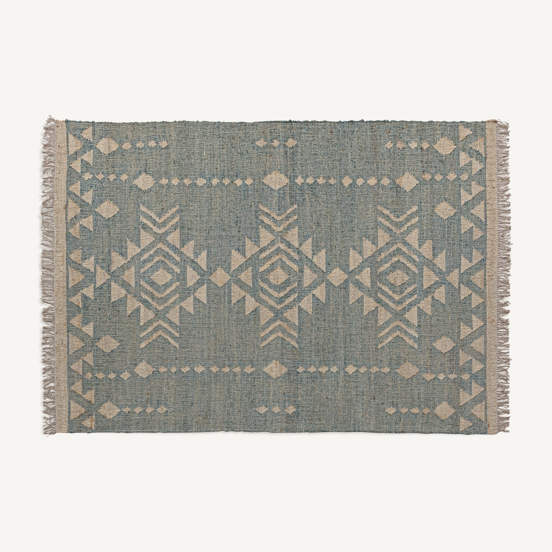 Ковер Kozakura в классическом стиле, изготовлен из синего джута в сочетании с бежевым хлопком. Ширина: 300 см, Глубина: 200 см, Высота: 1 см