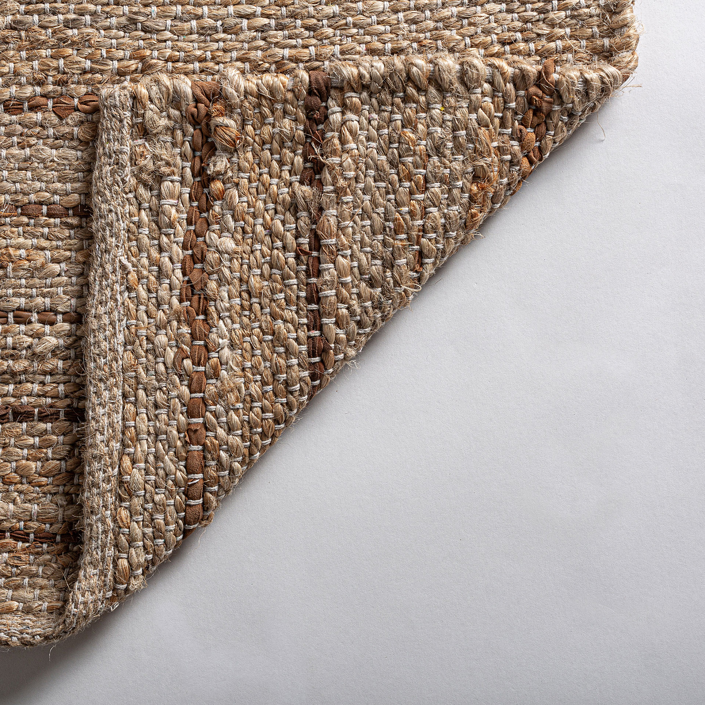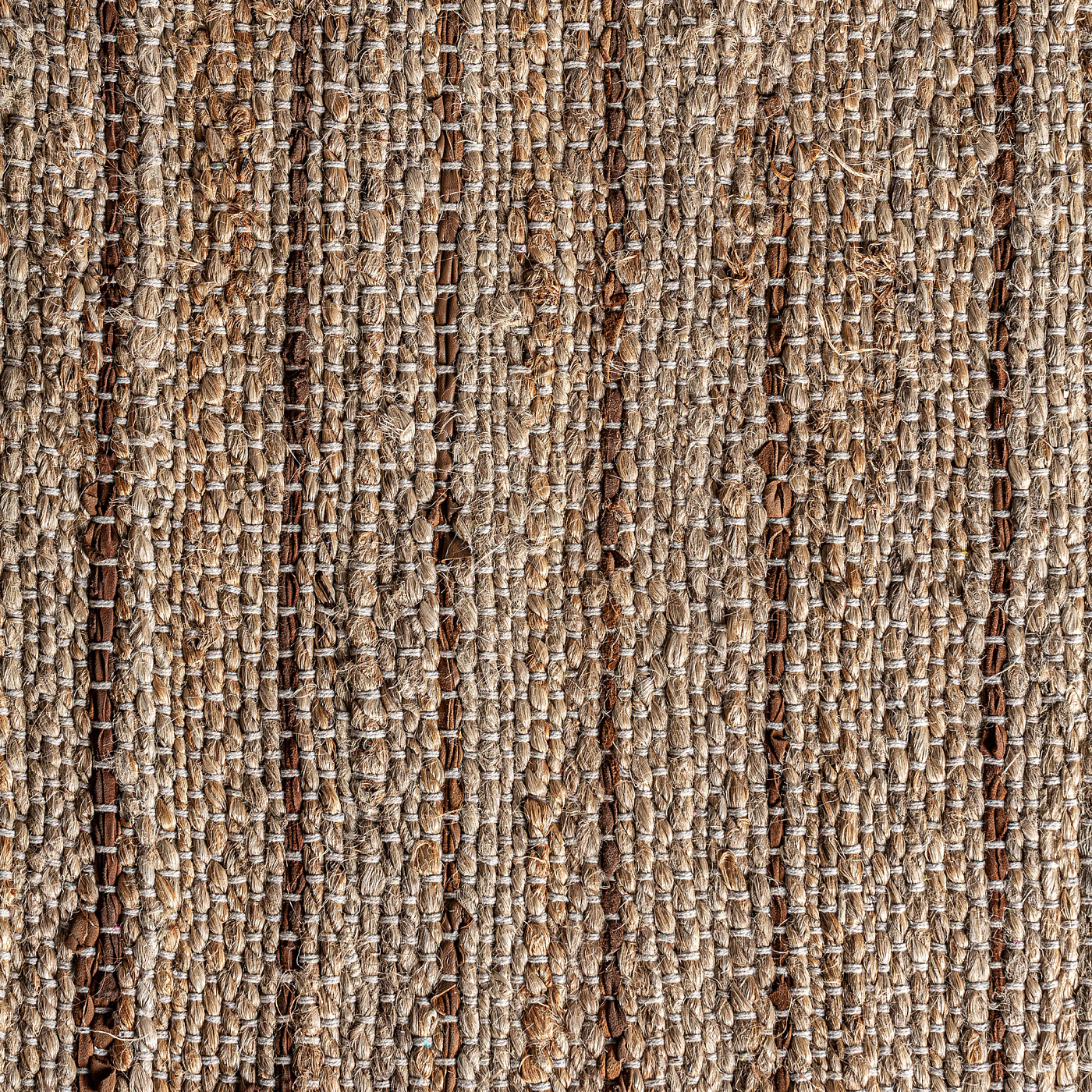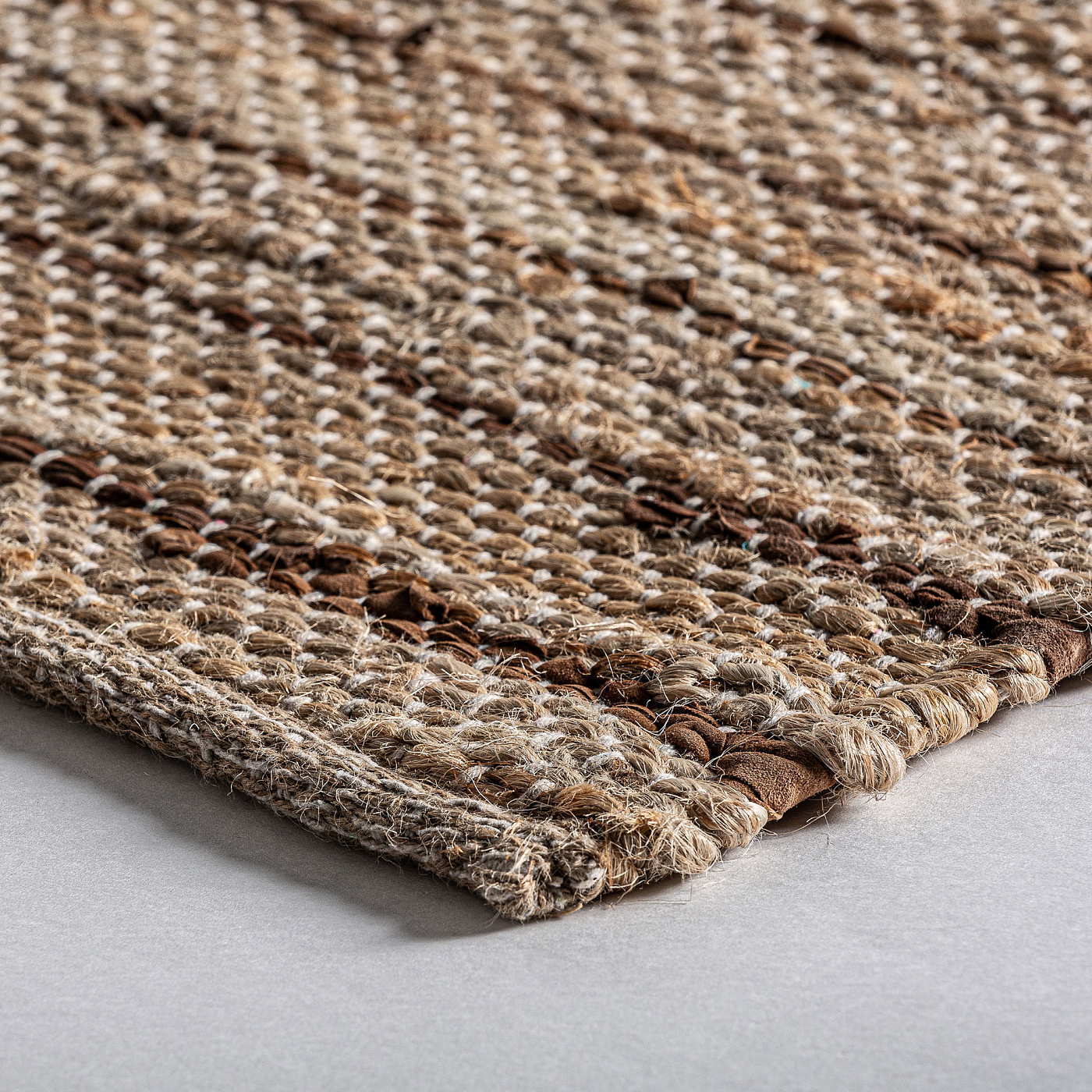 Ковер Тимба, коричневые тона, стиль бохо. Изготовлен из джута в сочетании с кожей.