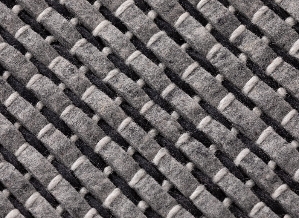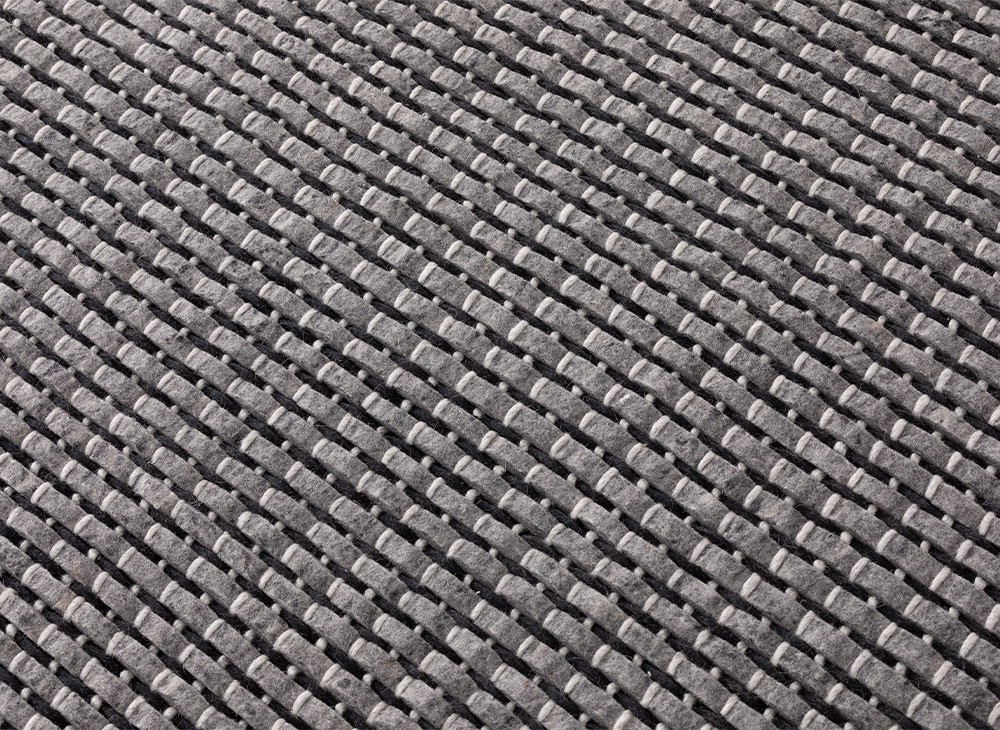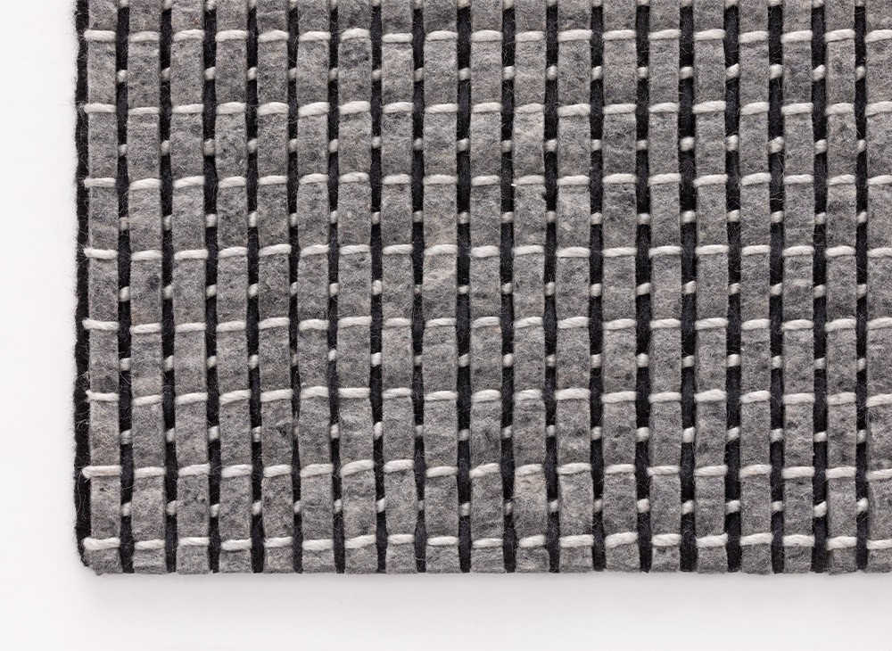 Это чёрный ковер из нашей коллекции Tramas, разработанный студией Romero & Vallejo, в котором инновационно сочетаются основа и уток с использованием войлока и различных видов шерсти. Тщательность, необходимая для его создания, означает, что этот ковер может быть изготовлен только с использованием техники ручного ткачества.