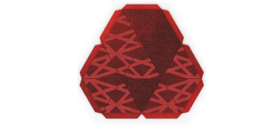 Стильный красный ковер Piramide способен выделить интерьер из тысячи других, привнеся в него яркости и индивидуальности. Необычная форма изделия формируется за счет правильной комбинации треугольников. Насыщенный гранатовый оттенок придает предмету декора выразительности и концептуальности.