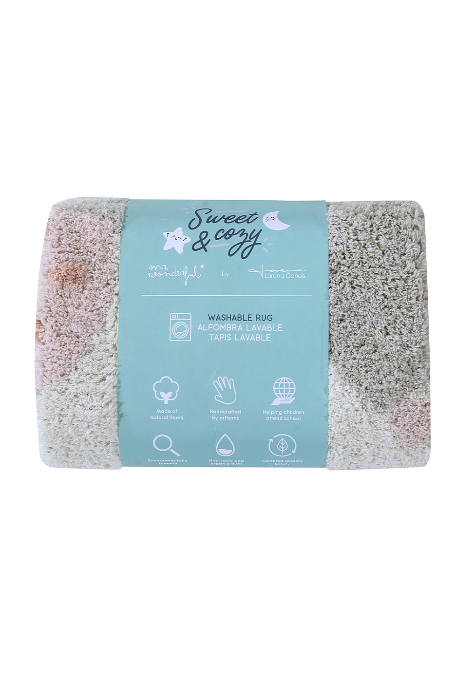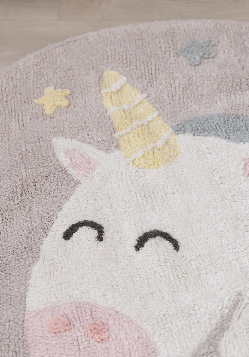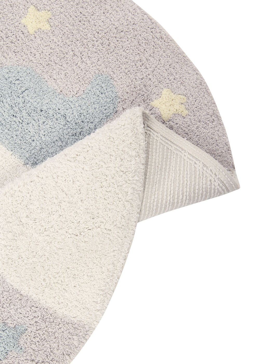 Коврик круглой формы в мягких пастельных тонах идеально подходит для дизайна детских комнат. Вы можете разместить его в центре комнаты или выделить зону сна или игр.