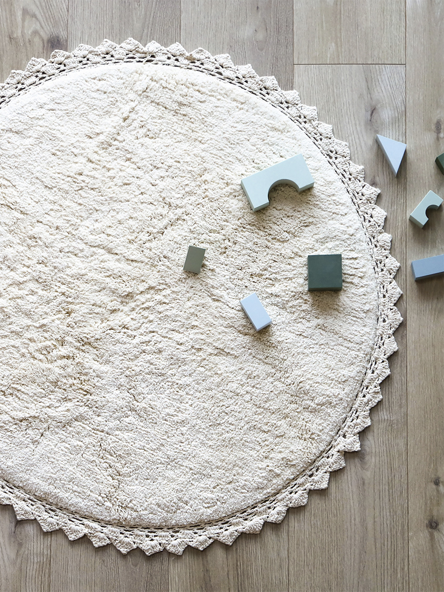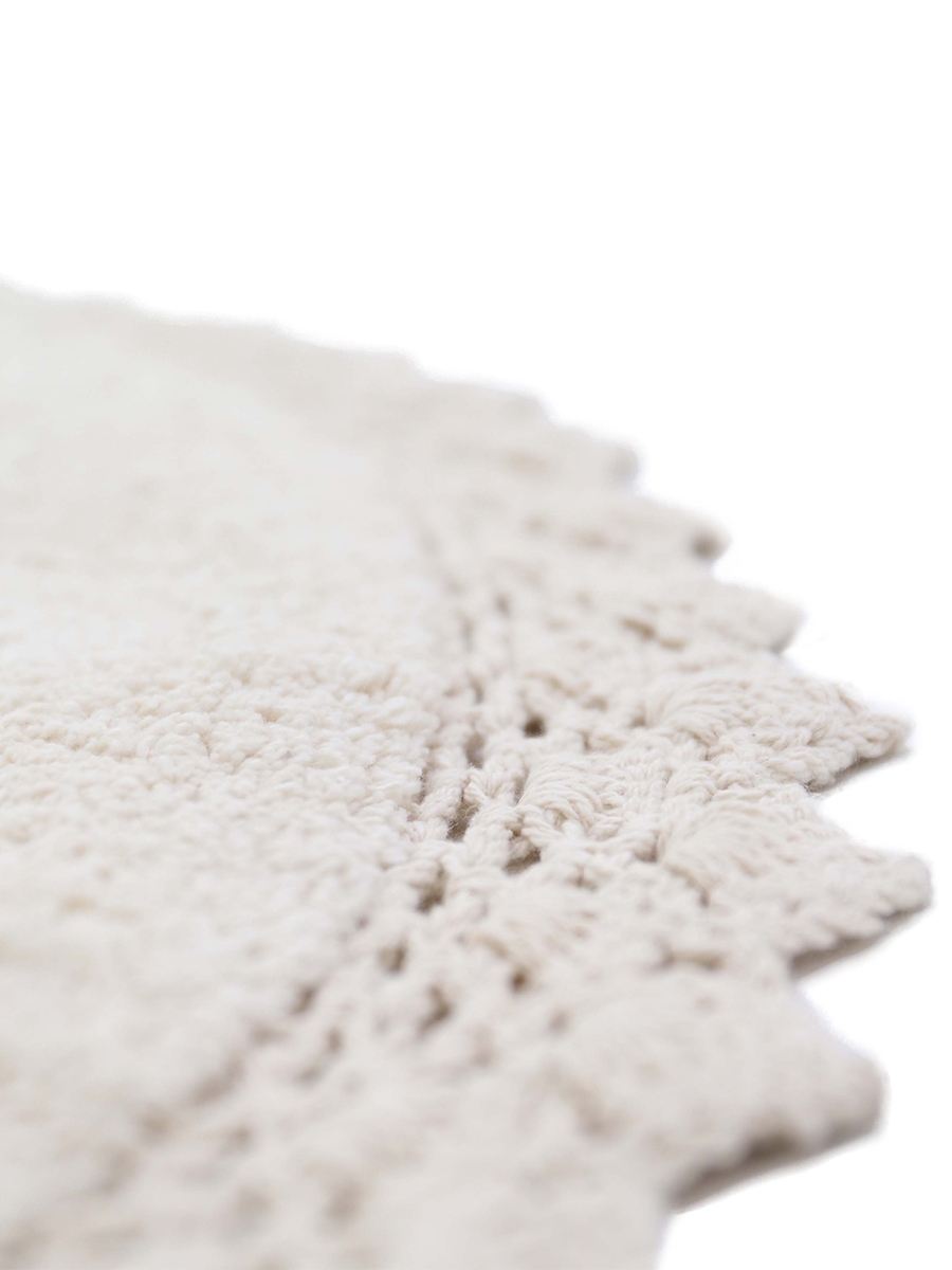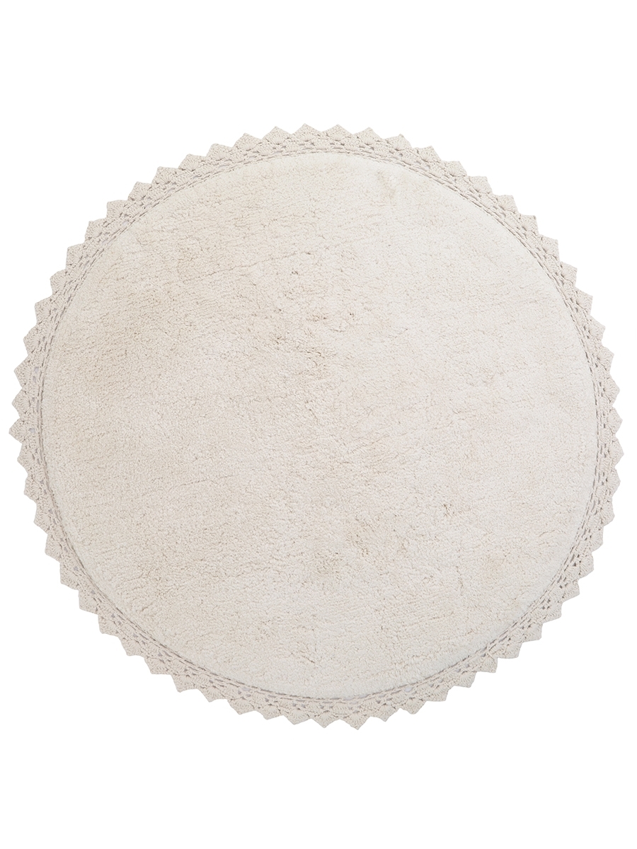 Этот красивый круглый и сдержанный ковер из натурального материала изготовлен вручную из 100% хлопка и сертифицирован OEKO-TEX.