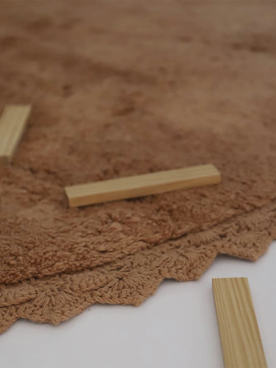 Этот красивый круглый и сдержанный ковер из натурального материала изготовлен вручную из 100% хлопка и сертифицирован OEKO-TEX.