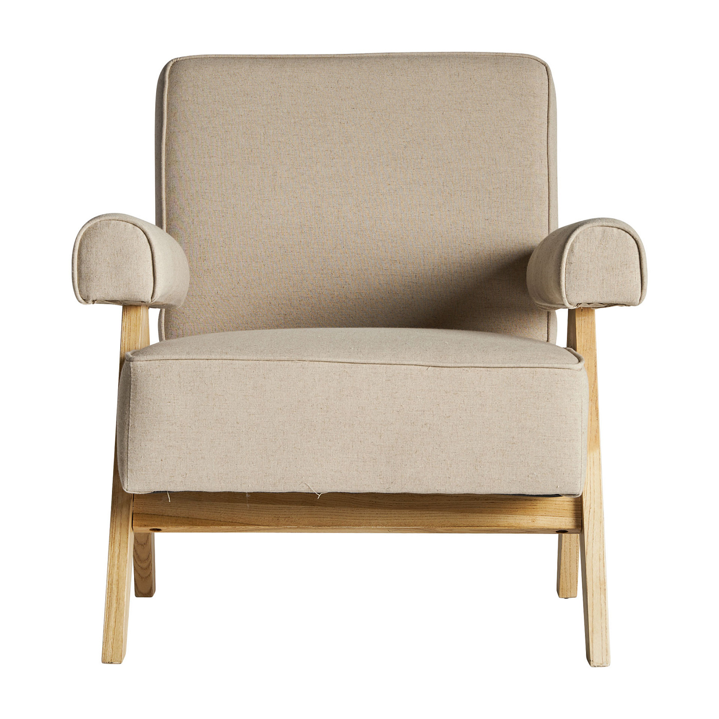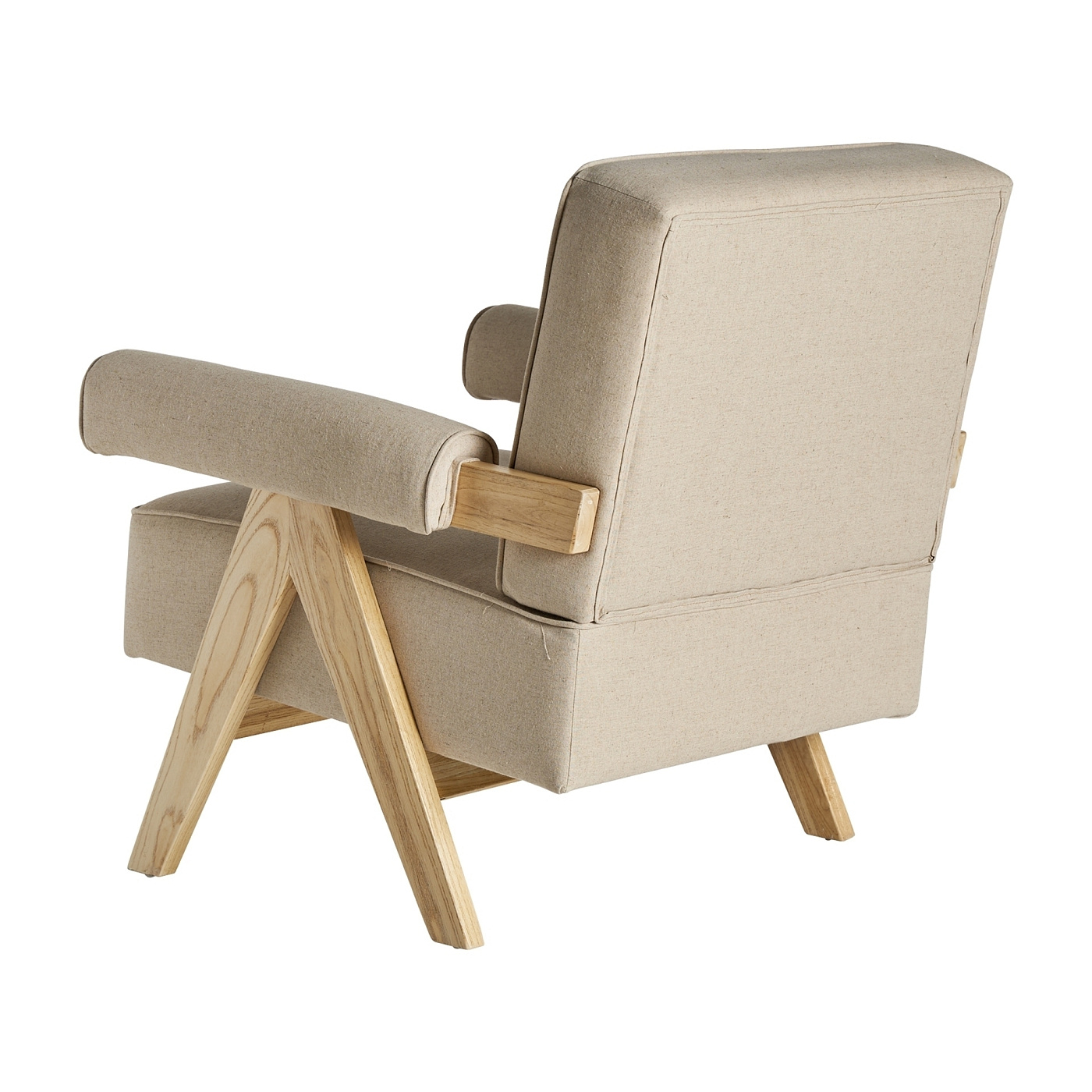 Кресло JONEN, бежевого цвета, колониальный стиль. Изготовлен из древесины вяза в сочетании со льном.