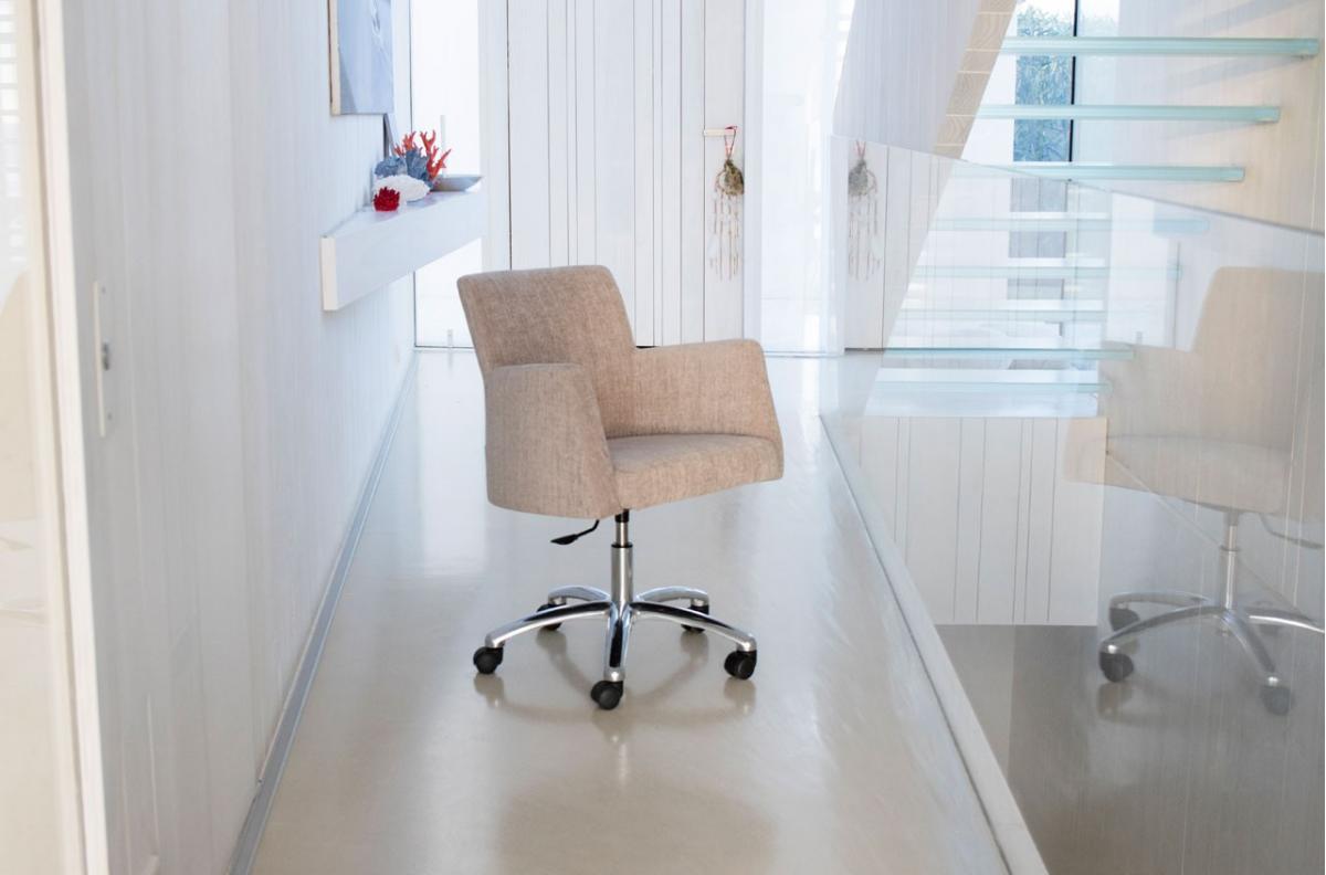 Кресло повседневное, очень удобное, подходит для использования для офисов. Поворотная основа изготовлена из алюминия, а высота регулируется газовым механизмом. Оно вращается на 360º. Опционально поворотное основание может быть изготовлено с колесиками.