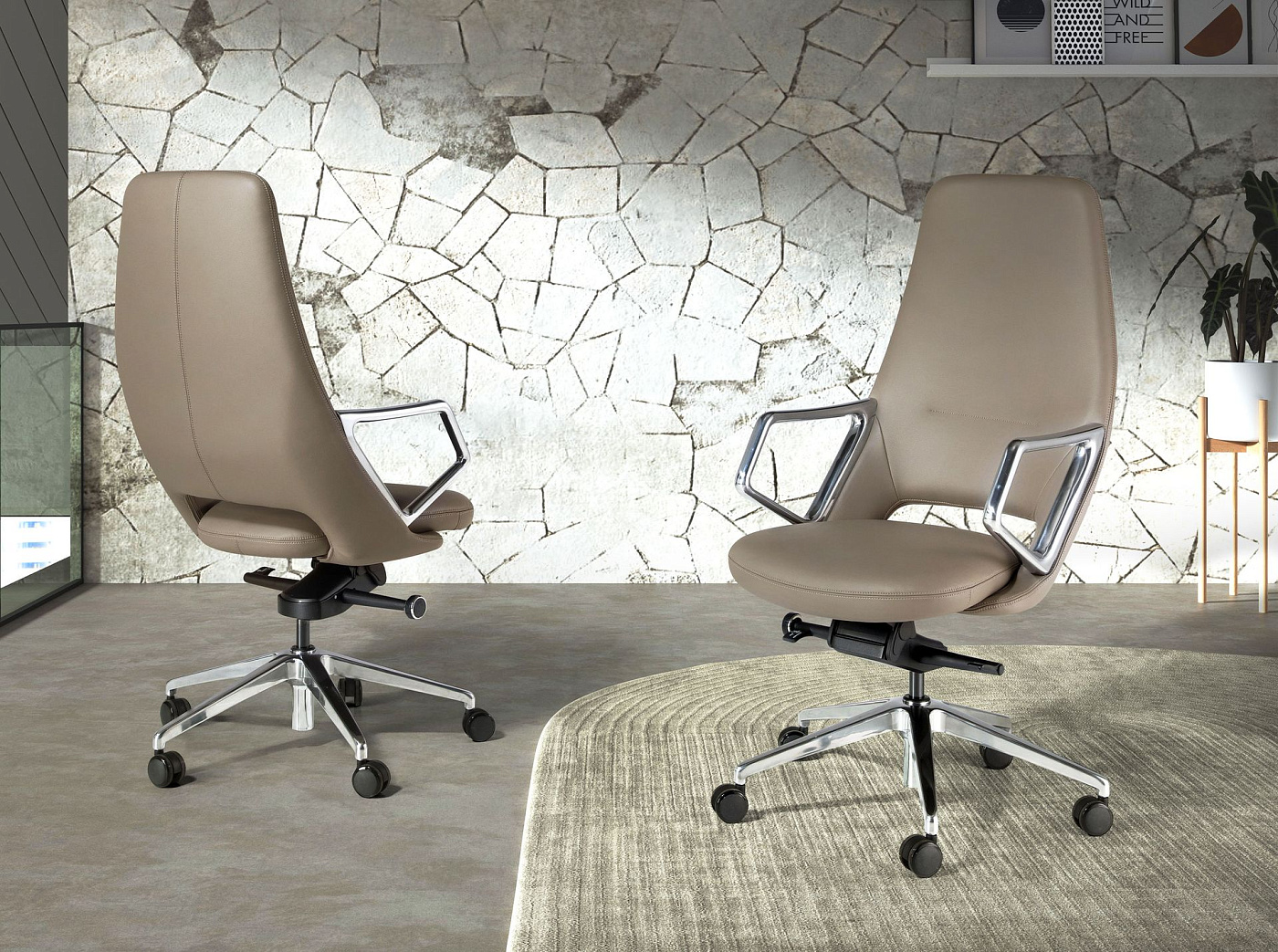 Офисное поворотное кресло 4217 из экокожи серого цвета