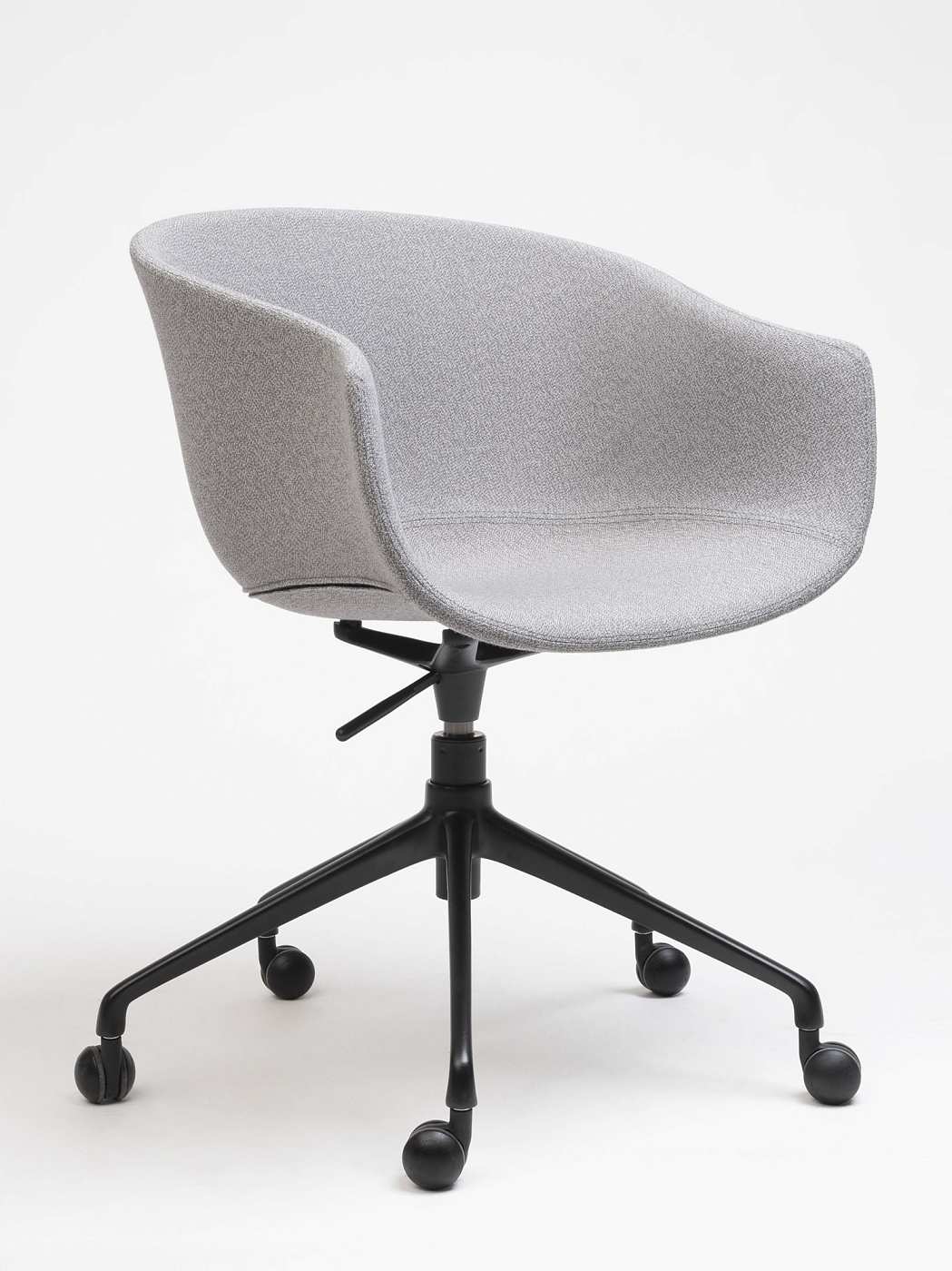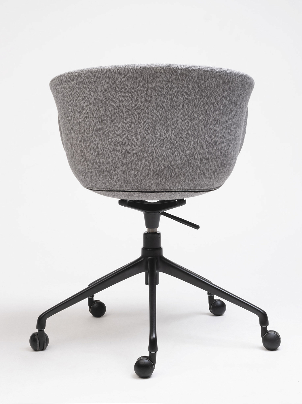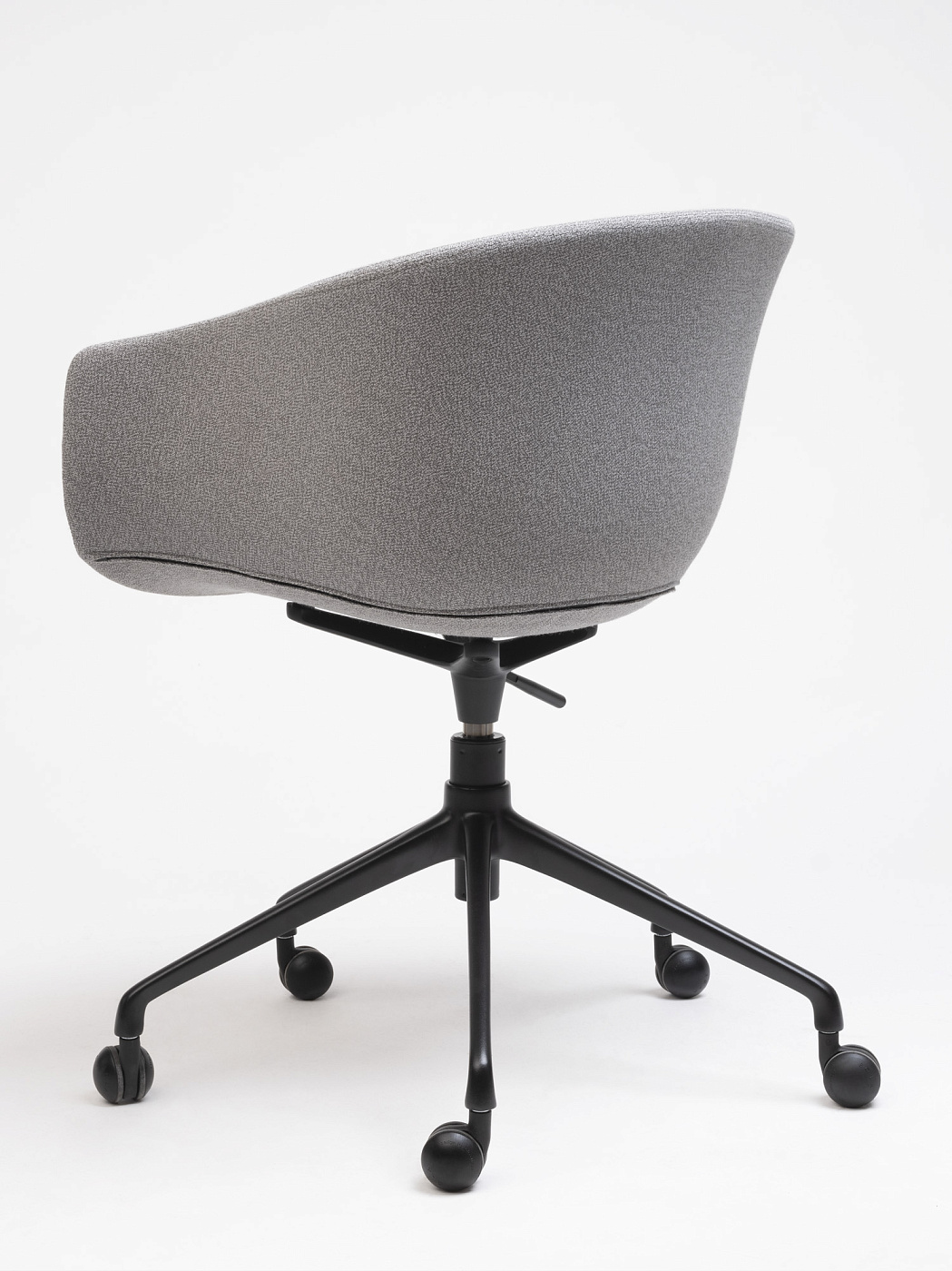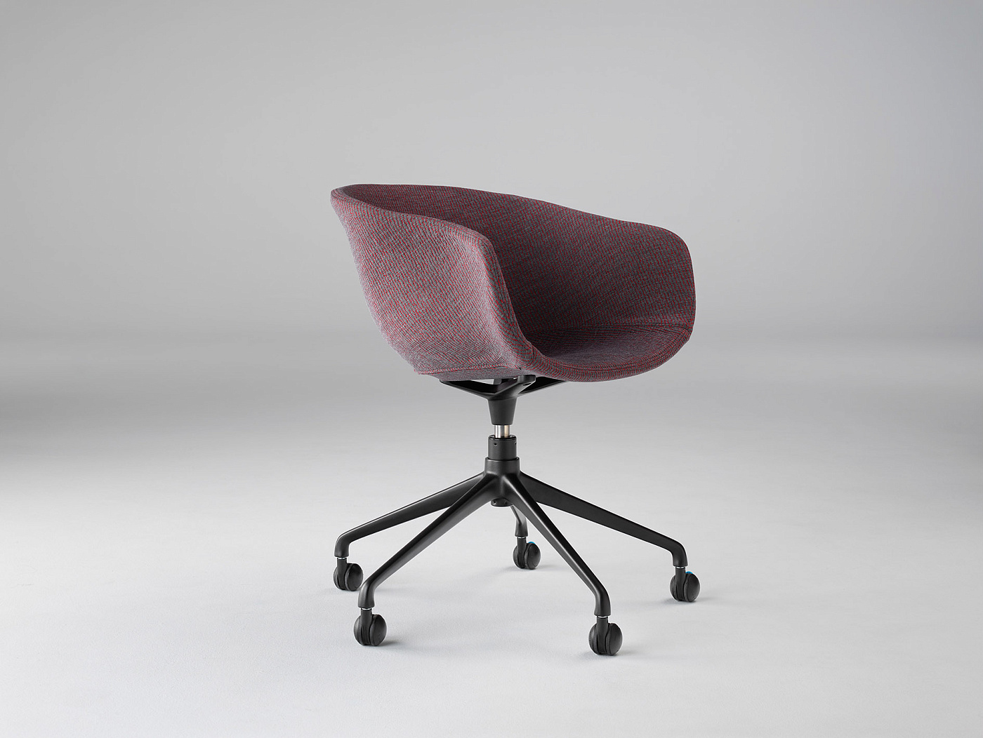 Обладая щедрыми пропорциями и обволакивающими линиями, это универсальное изделие благородного и теплого вида. Регулируемое вращающееся кресло Bai на колесиках, стальная конструкция, поддерживающая корпус мягкой органической формы из полипропилена или обивки.