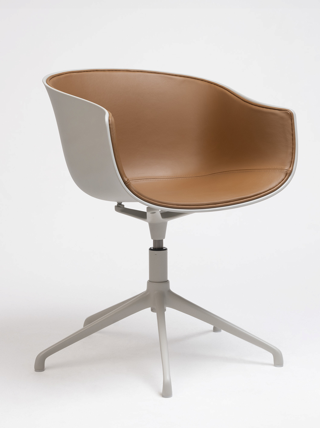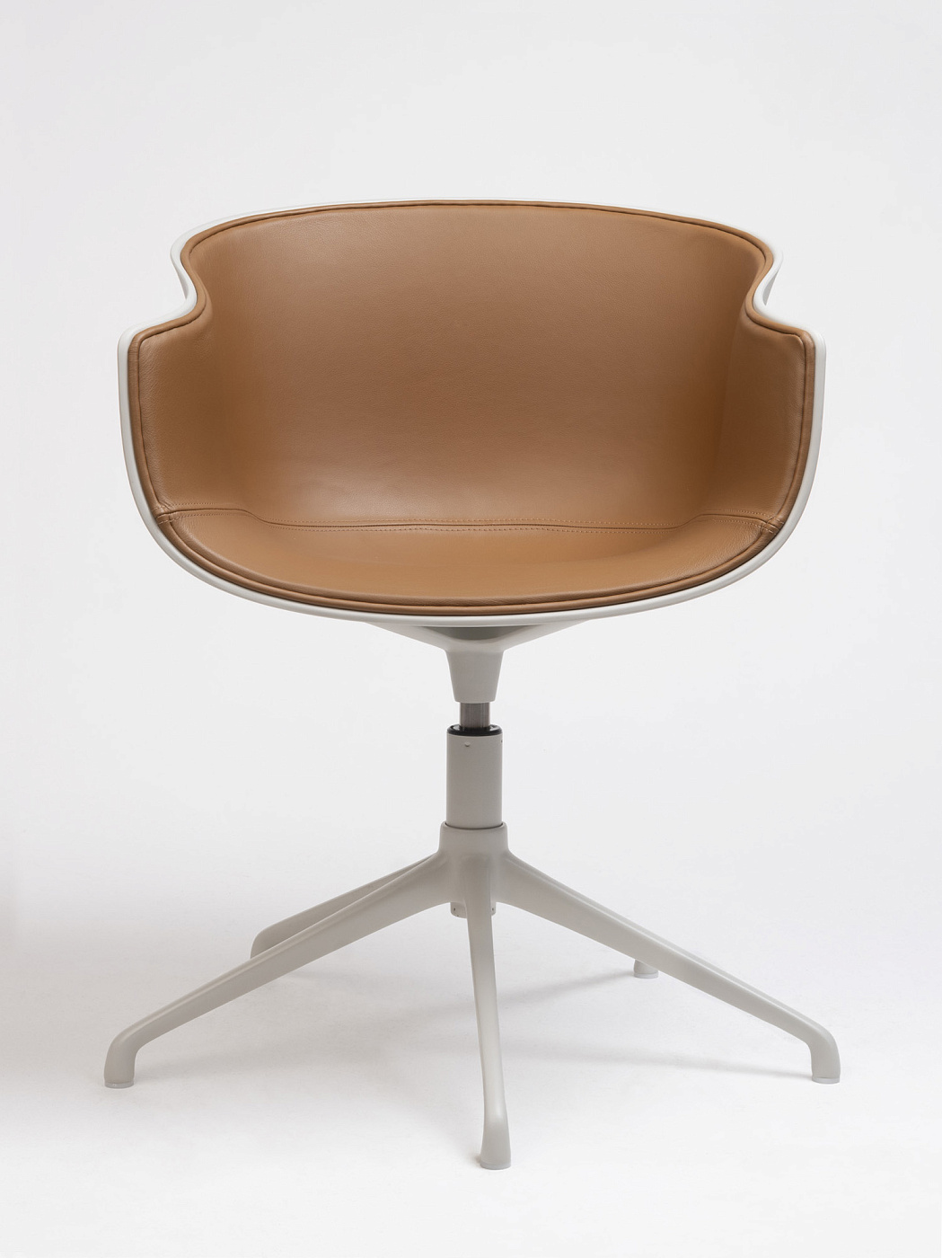 Обладая щедрыми пропорциями и обволакивающими линиями, это универсальное изделие благородного и теплого вида. Вращающийся стул Bai стальная конструкция, поддерживающая корпус мягкой органической формы из полипропилена или обивки.