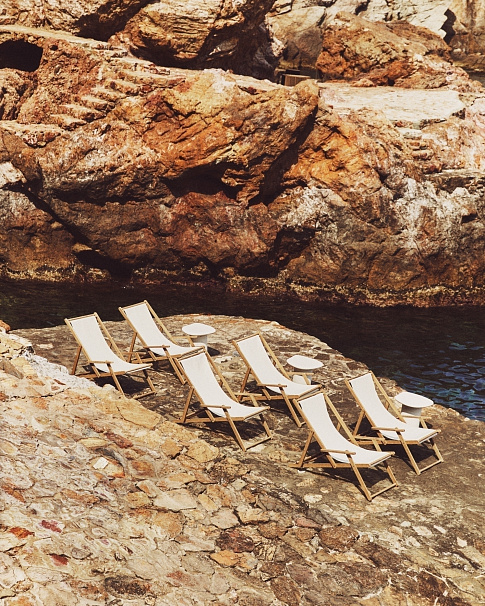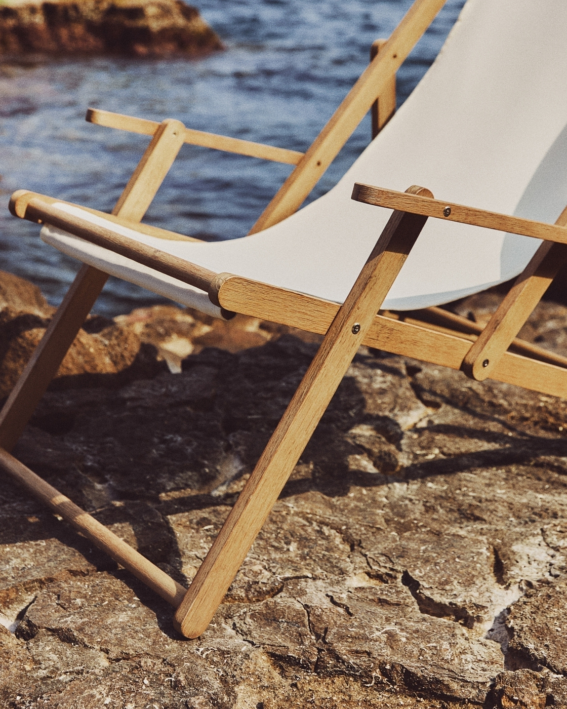 Cкладное кресло Vilara для улицы из акации и текстиля белого цвета