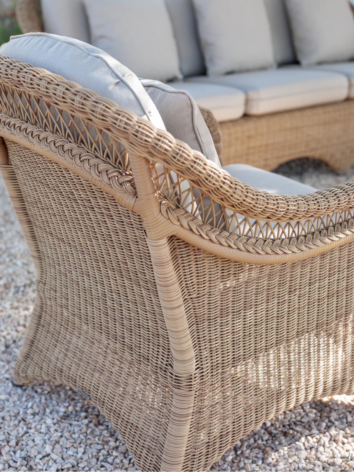 Кресло для отдыха. Лакированная алюминиевая рама, плетение из волокна Shintotex круглой формы 3-4 миллиметра в двух вариантах отделки: 03 поджаренный или 36 слоновой кости.