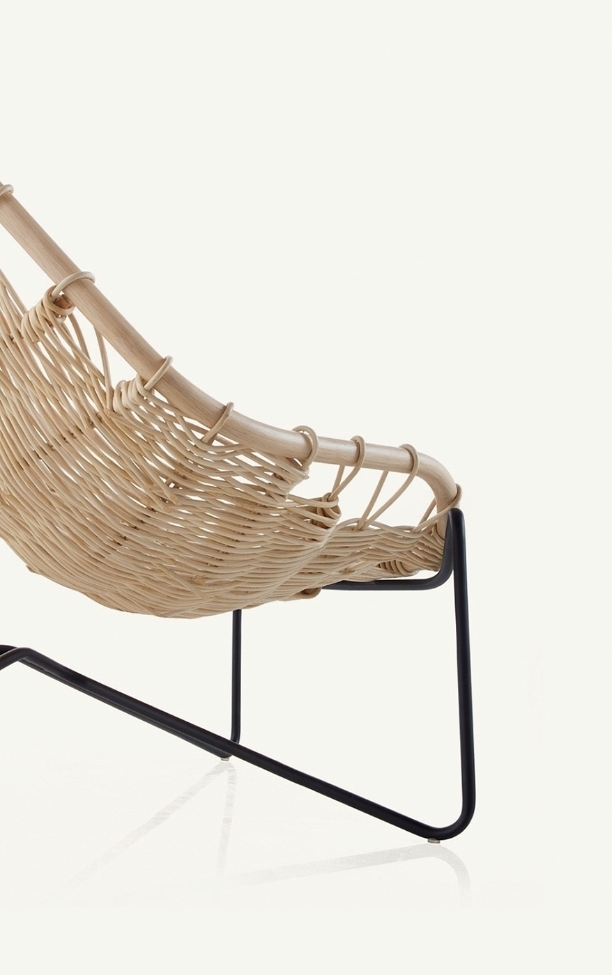 Кресло изготовлено из очищенного и тонированного натурального ротанга диаметром 34 мм/1,33 дюйма и плетеной кости ручной работы диаметром 8 мм/0,3 дюйма. Отделка трехступенчатым покрытием (краска, базовое покрытие и верхнее покрытие), высоко устойчивым к солнечному излучению благодаря УФ-фильтрам. Ножки из лакированной стальной трубы с секцией 18 мм/0,7 дюйма. Регулируемые пластиковые крышки.