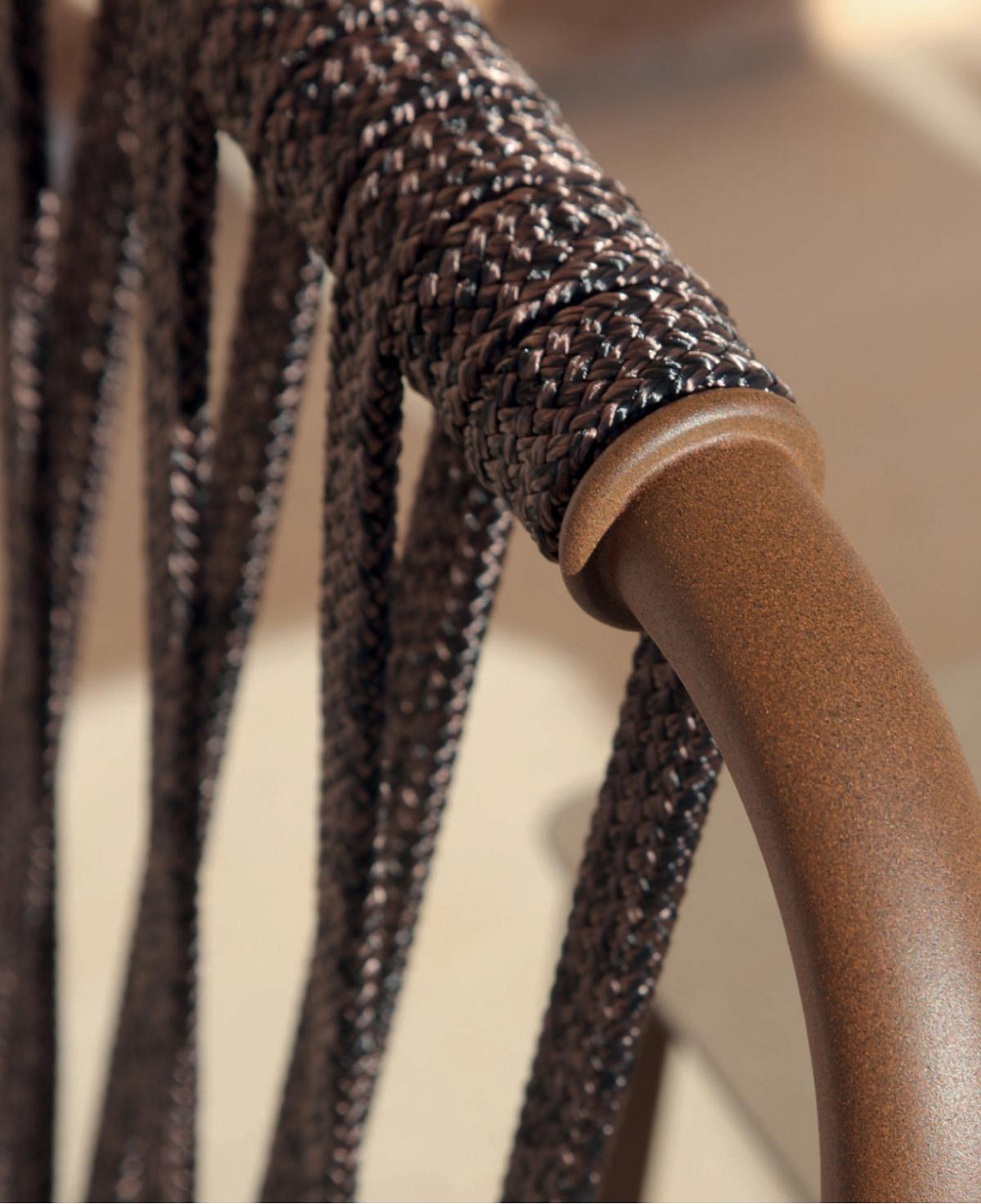 Кресло ручной работы из трубы из нержавеющей стали с полиэфирным порошком. Отделка ручной работы с высокопрочной веревкой шириной 24 мм/0,94 дюйма.