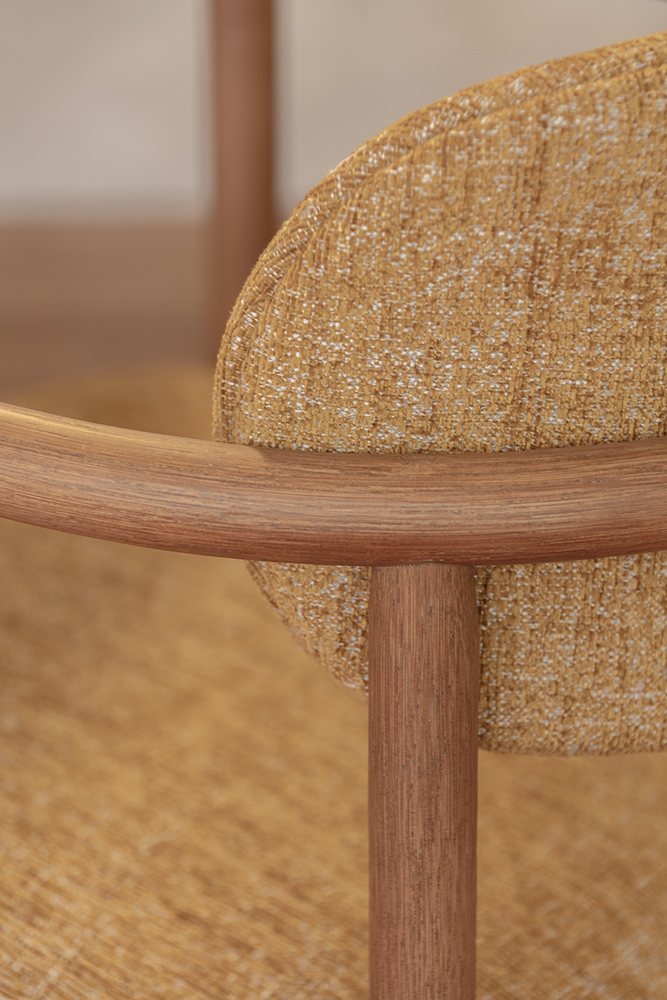 Обеденное кресло с каркасом из очищенного и тонированного натурального ротанга диаметром 30 мм/1,18 дюйма. Существует несколько вариантов сиденья и спинки: изготовлено из очищенного и тонированного натурального ротанга диаметром 8 мм/0,3 дюйма с дополнительной подушкой, обитое сиденье или обитые сиденье и спинка или обитое сиденье. Возможность персонализации с помощью широкого ассортимента высокоэффективных технических тканей. Отделано трехступенчатым покрытием на водной основе (краситель, базовый слой и верхний слой), высокоустойчивым к солнечному излучению благодаря УФ-фильтрам. Защитные колпачки.