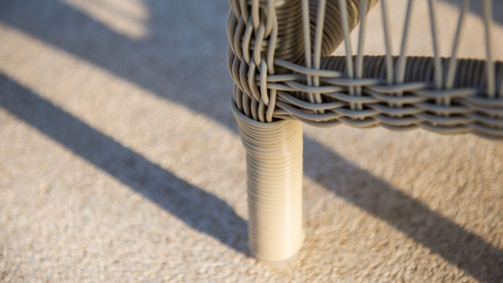 Модель с закруглёнными формами и полупрозрачным кружевным плетением, придающим всей коллекции лёгкость и воздушность. Прекрасный образец смешения двух стилей легко становится украшением пространства как внутри, так и снаружи дома