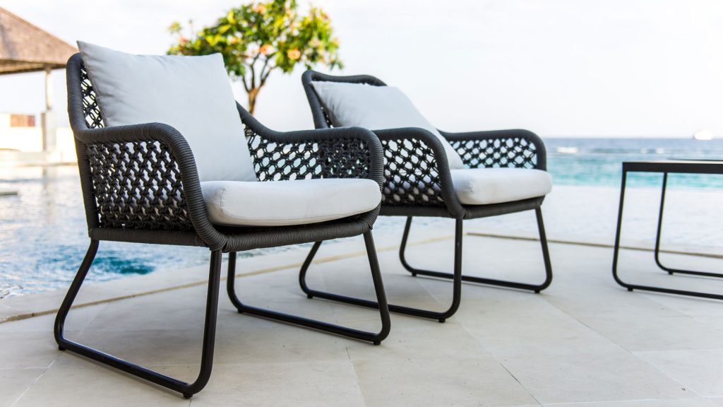 Характерное плетение этой коллекции придаёт ей лёгкость, в то время как извилистые алюминиевые конструкции придают изделиям прочность и долговечность. Антрацитовый шнур и тёмное порошковое покрытие делают коллекцию универсальной, позволяя идеально вписываться в любое пространство