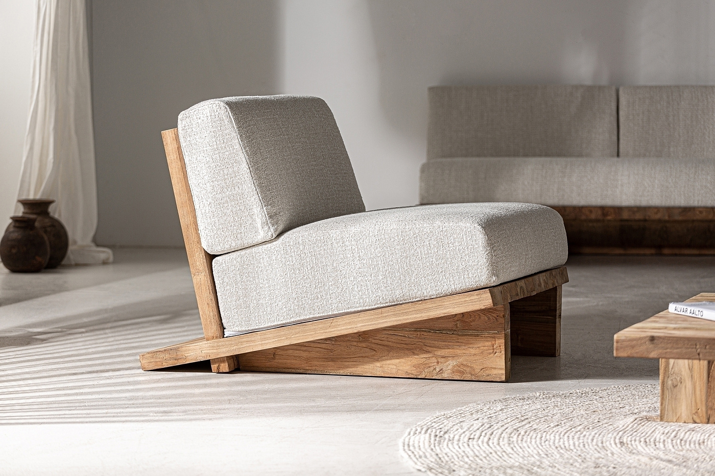 Минимализм и суть. Кресло Pure изготовлено из переработанного тикового дерева светло-коричневого оттенка и обито белым переработанным полипропиленом. Съёмный чехол делает его одновременно практичным и элегантным. Экологичный пример экологичности со скандинавским оттенком. Ширина: 90 см, Глубина: 100 см, Высота: 73 см