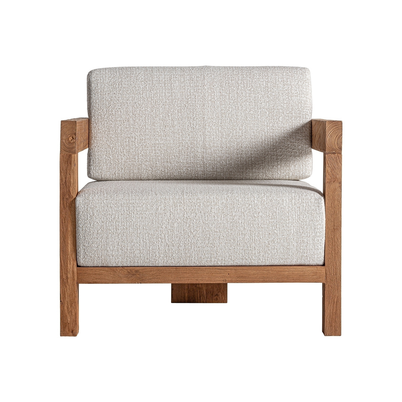 Кресло Testa в колониальном стиле, изготовлено из коричневого переработанного тикового дерева в сочетании с бежевым переработанным полипропиленом и пеной. Съемный чехол.