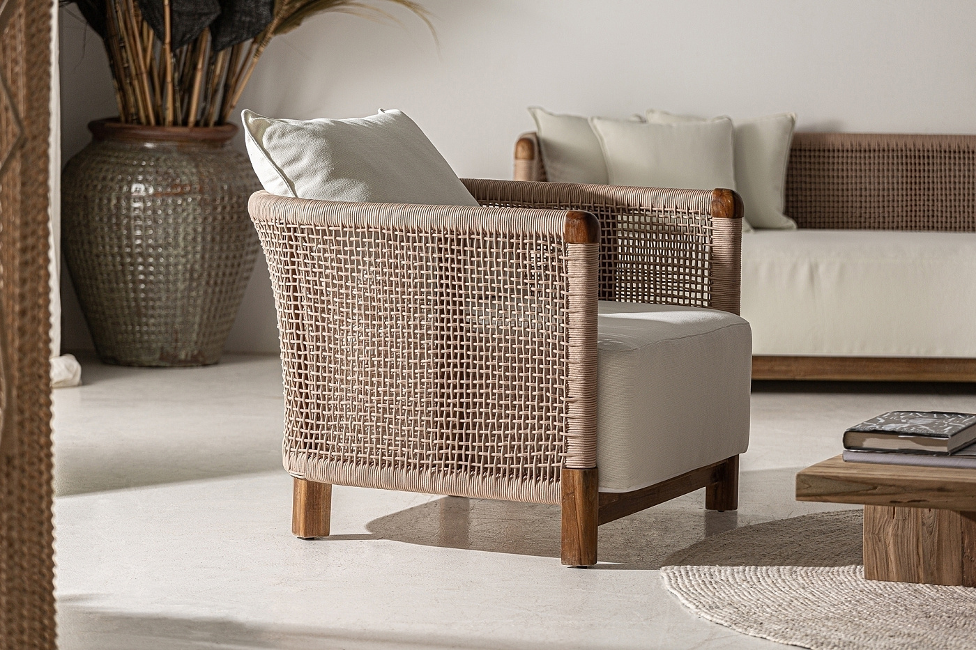 Изделие, воплощающее в себе суть бесконечного лета. Кресло Trena с каркасом из светло-коричневого переработанного тика дополняется белоснежным переработанным полипропиленом. Удобное и стильное, оно идеально подходит для террас, наполненных особым колоритом. Разбирается для удобства хранения. Ширина: 85 см, Глубина: 88 см, Высота: 70 см