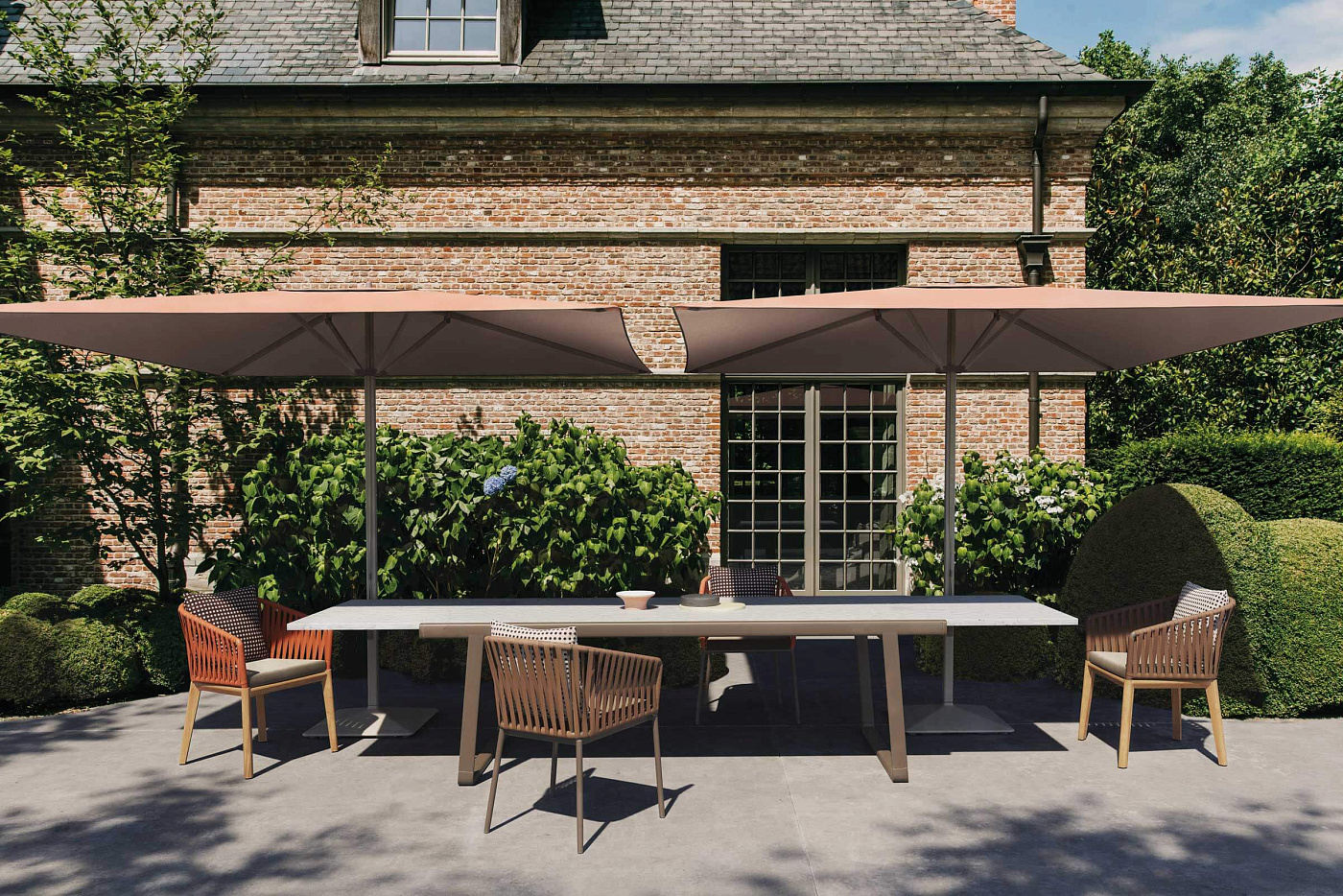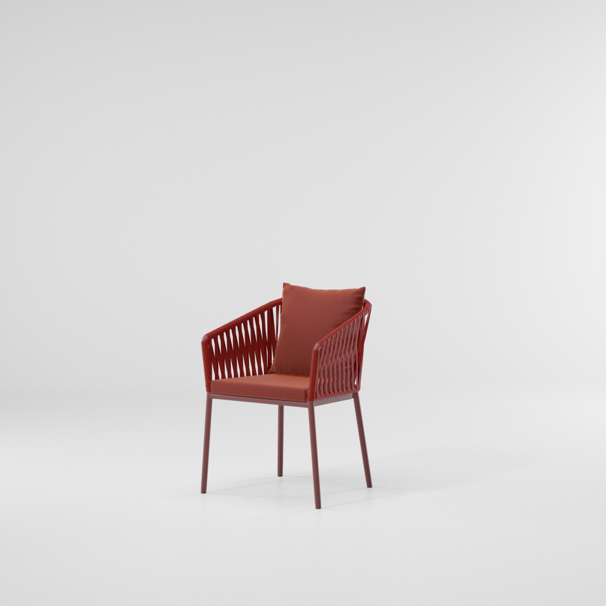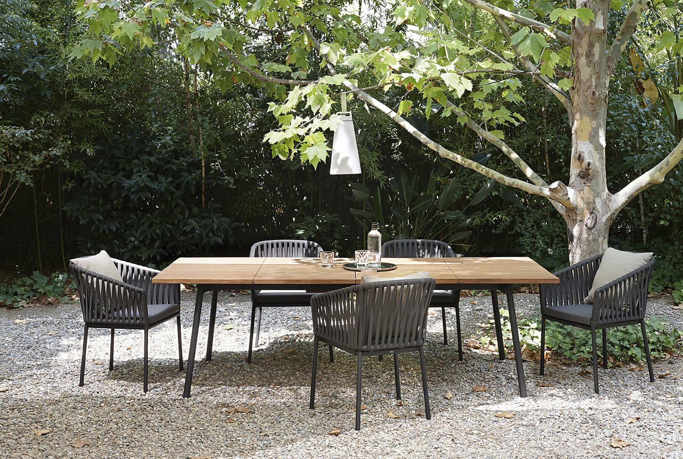 Для Kettal Bitta характерно сочетание алюминиевых и тиковых рам, сидений из плетеного полиэстера и удобных подушек, столешниц из тикового дерева или камня - и все это с использованием всех водонепроницаемых материалов. “Намерение дизайнера состояло в том, чтобы создать плотную оплетку, которая все еще пропускала бы воздух, напоминающую оплетку канатов, используемых для швартовки лодок (отсюда и название Bitta, что в переводе с итальянского означает "швартовка"), благодаря чему изделия выглядят легкими, но в то же время они выглядят прямо как уютные гнездышки в естественных тонах, в которых можно посидеть и расслабиться.” Новая отделка Bitta: Алюминиевые ножки, ножки из тикового дерева, канаты Bela, параллельные ткани
