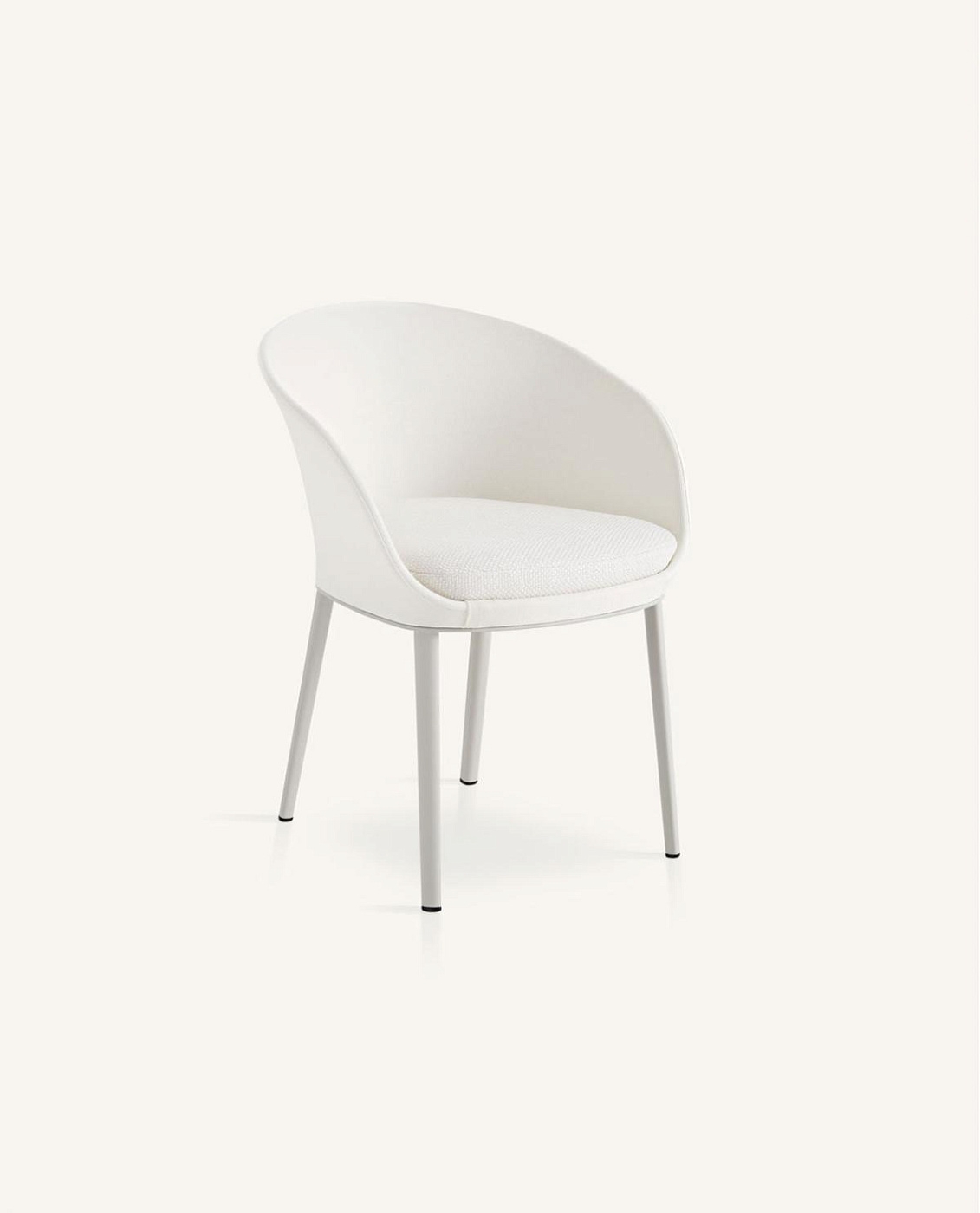 Обеденное кресло со структурой из высокопрочной алюминиевой трубы с гидроформованными алюминиевыми ножками. Возможность индивидуальной настройки благодаря широкому выбору технических тканей, полностью подходящих для использования на открытом воздухе.