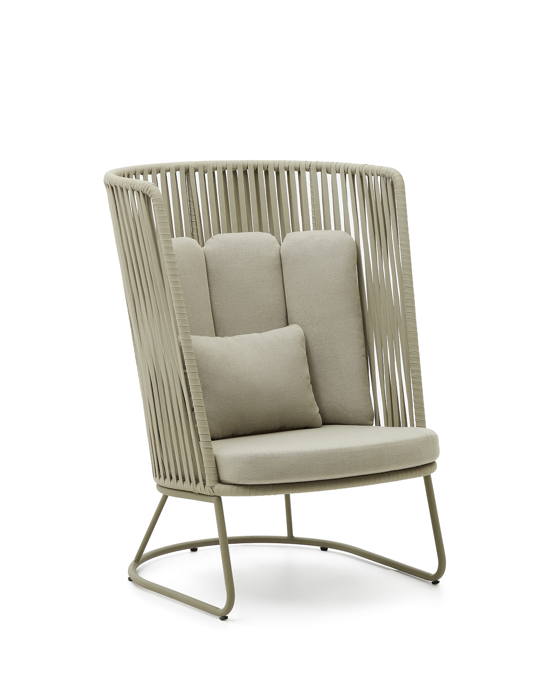 Saconca - идеальная коллекция для любого экстерьера. Создайте идеальный контраст на своей террасе или в саду с помощью этого кресла, сочетающего в себе натуральность шнура и современность стали.