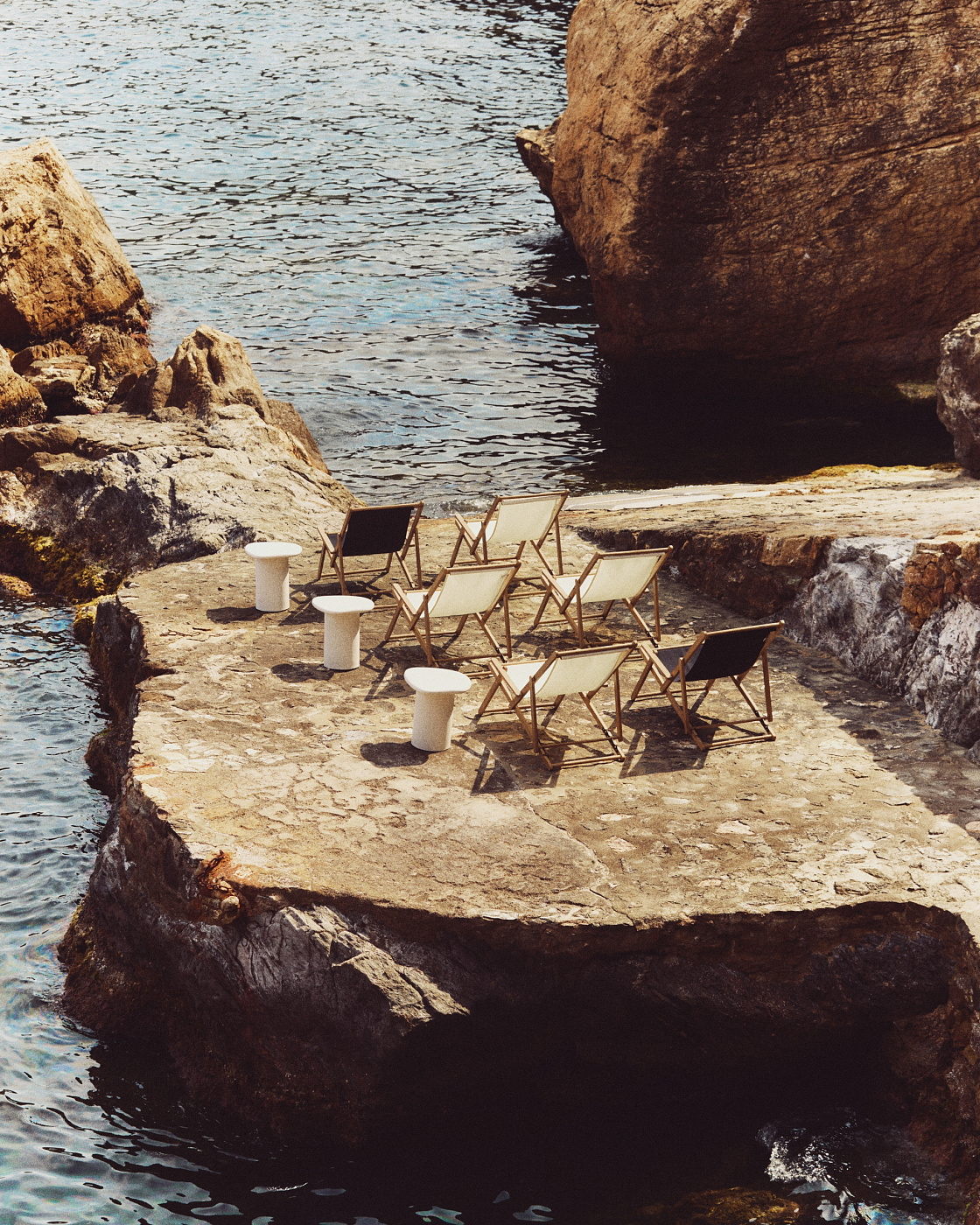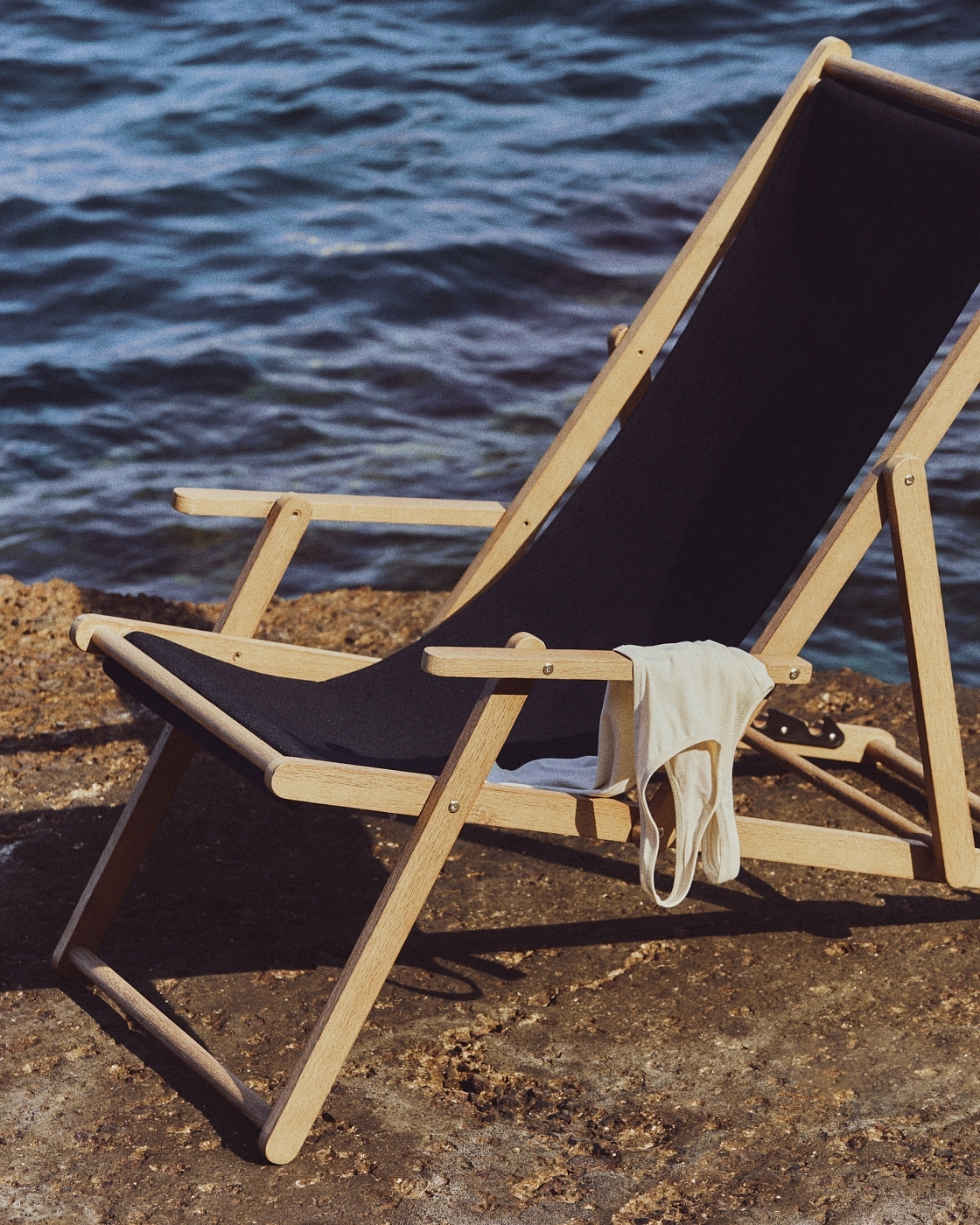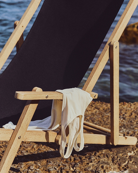 Складное кресло Vilara для улицы из акации и текстиля черного цвета