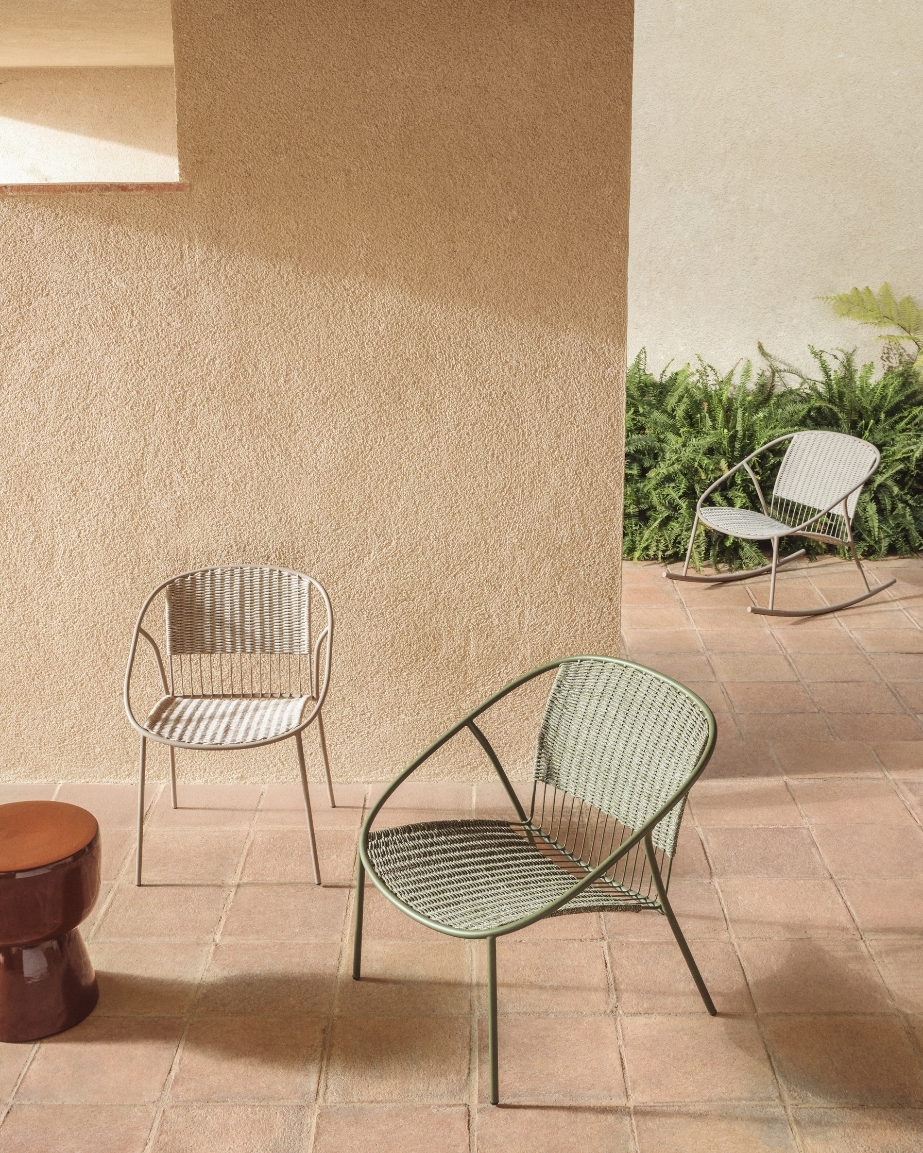 Уличное кресло Atrani из оцинкованной стали и зеленой веревки