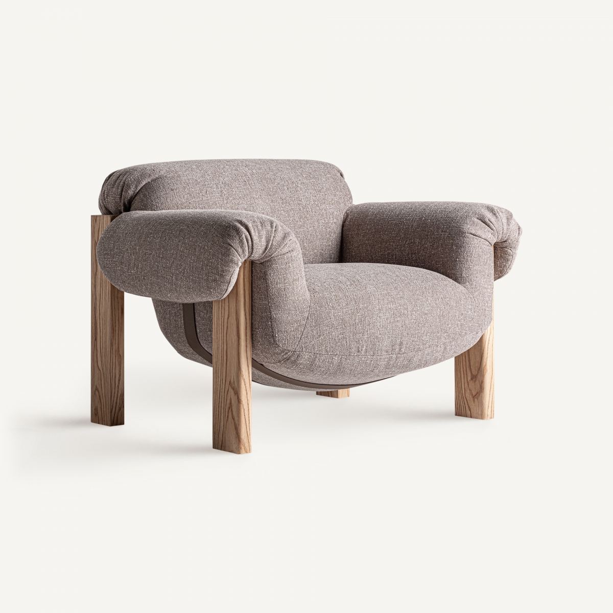 Кресло изготовлено из коричневого полиэстера в сочетании со светло-коричневой сосной и поролоном. Ширина: 112см, Глубина: 101см, Высота: 81см
