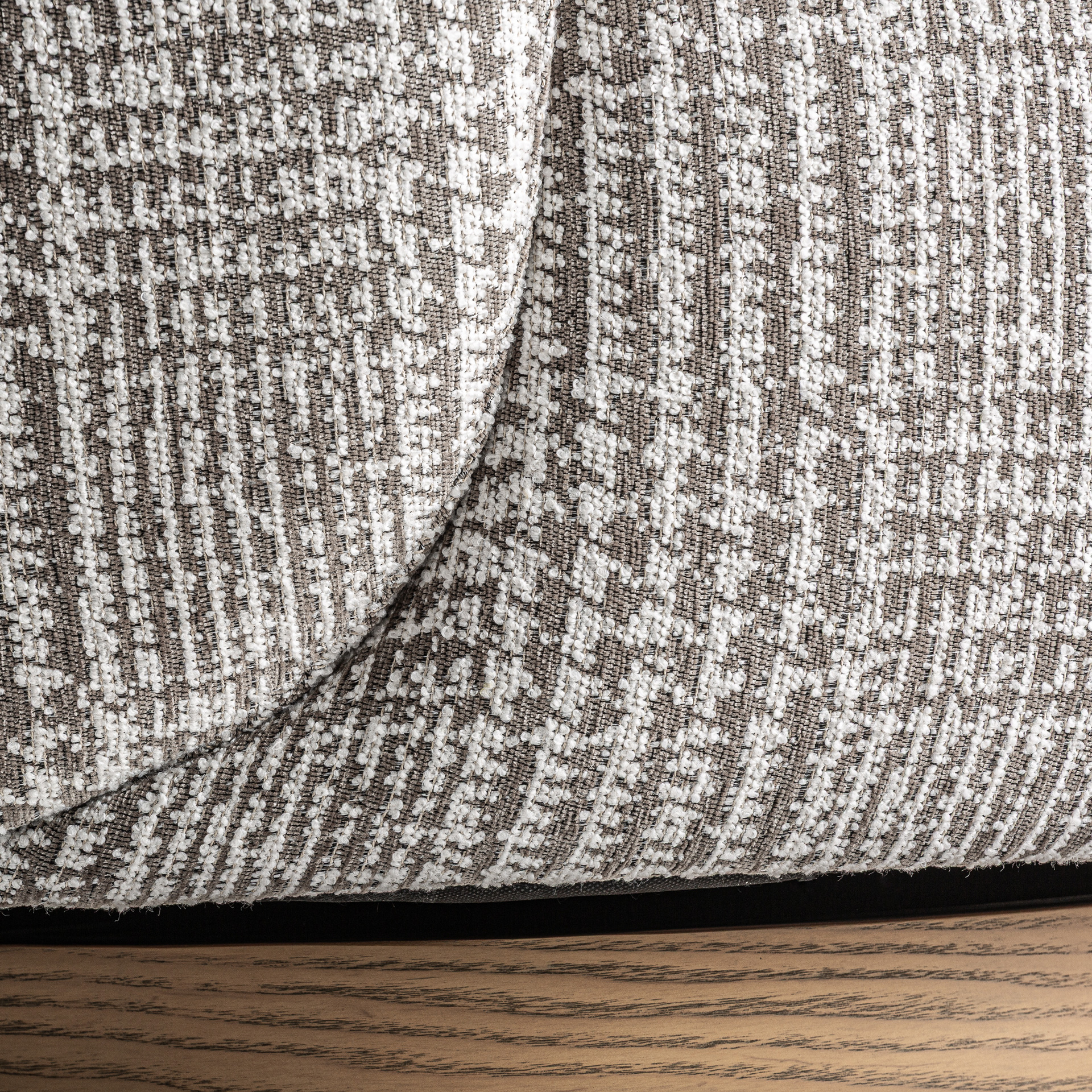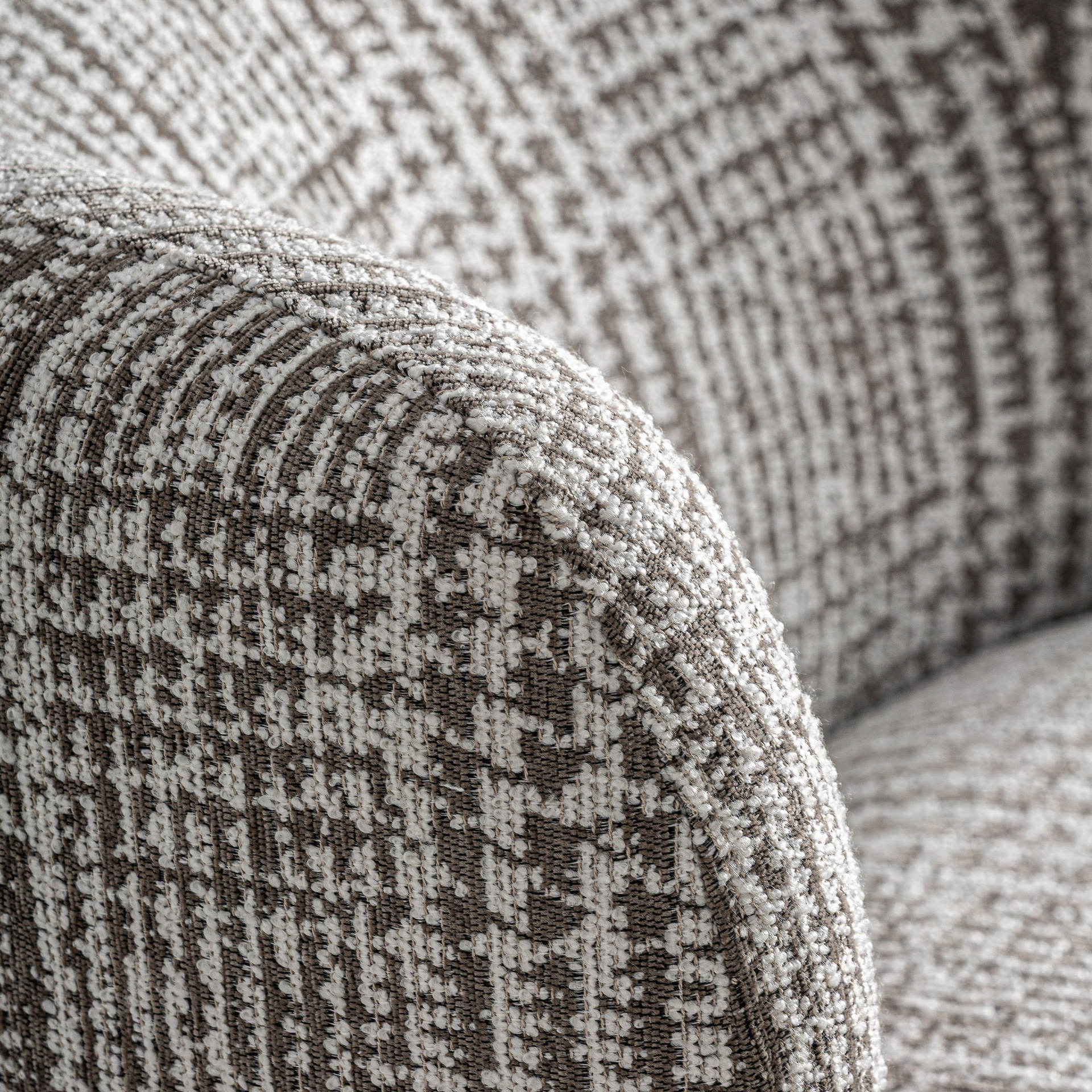 Кресло, изготовленное из зеленого полиэстера с пятнистой текстурой, в сочетании с коричневой сосновой древесиной и пенополиуретаном. Ширина: 85 см, Глубина: 85 см, Высота: 75 см