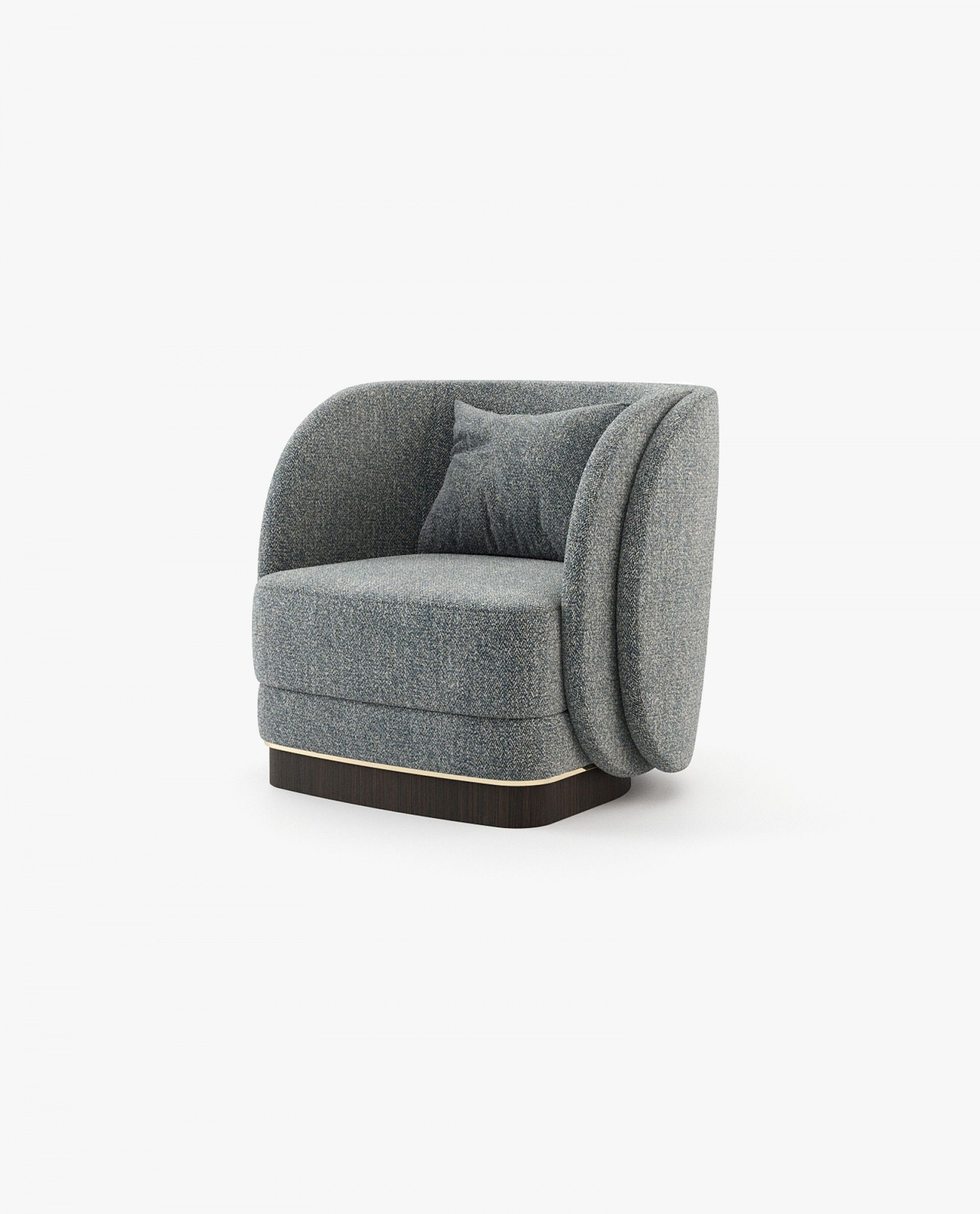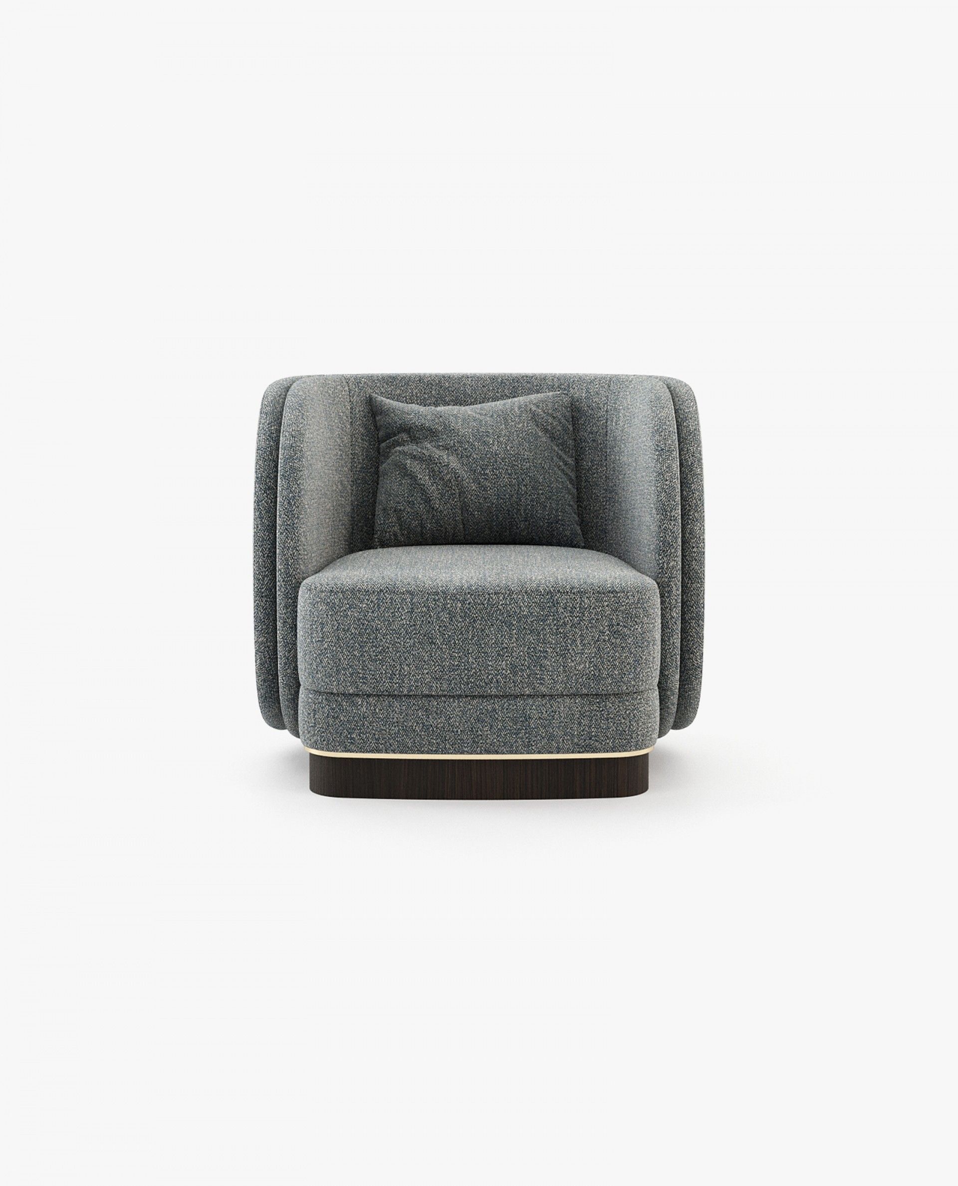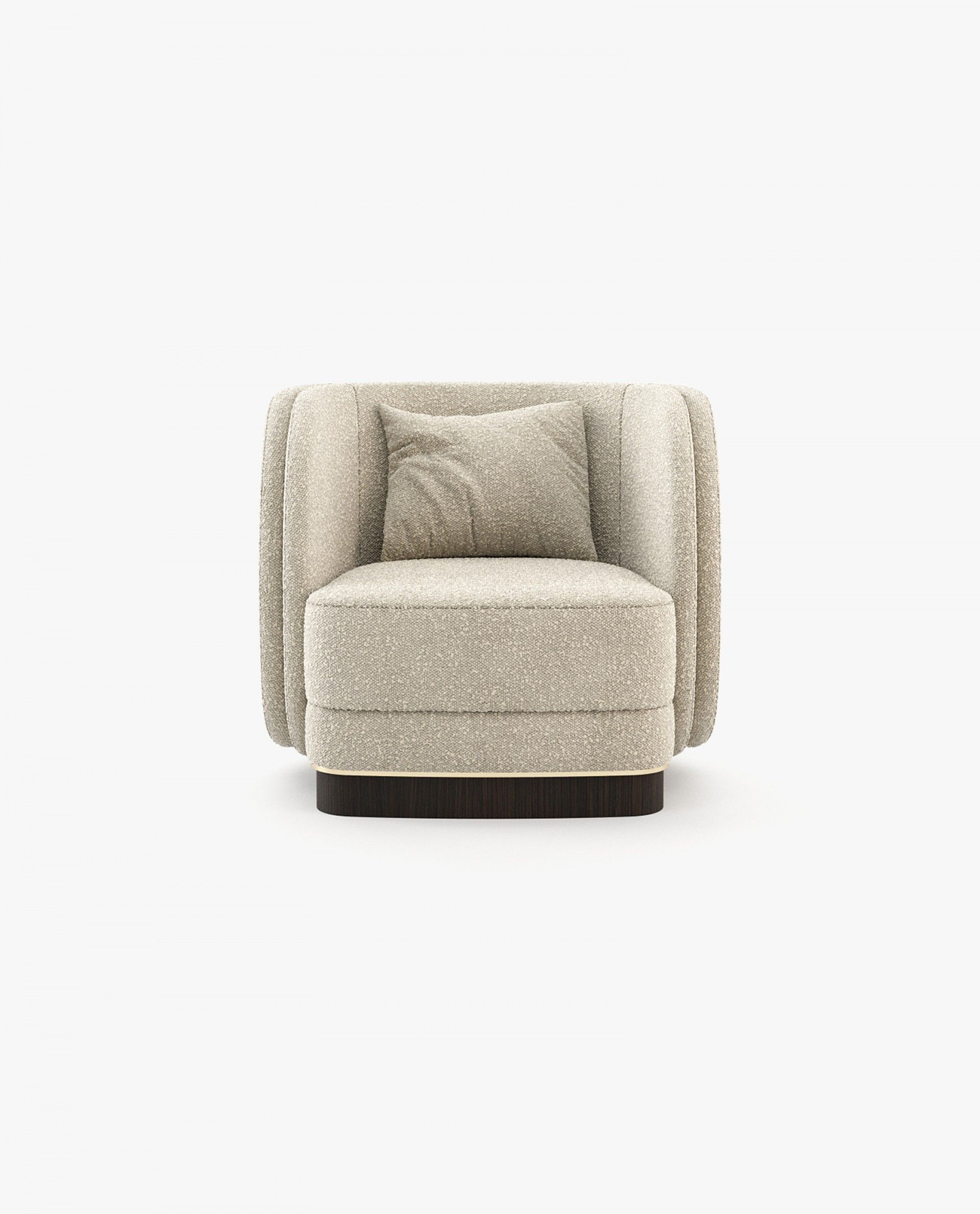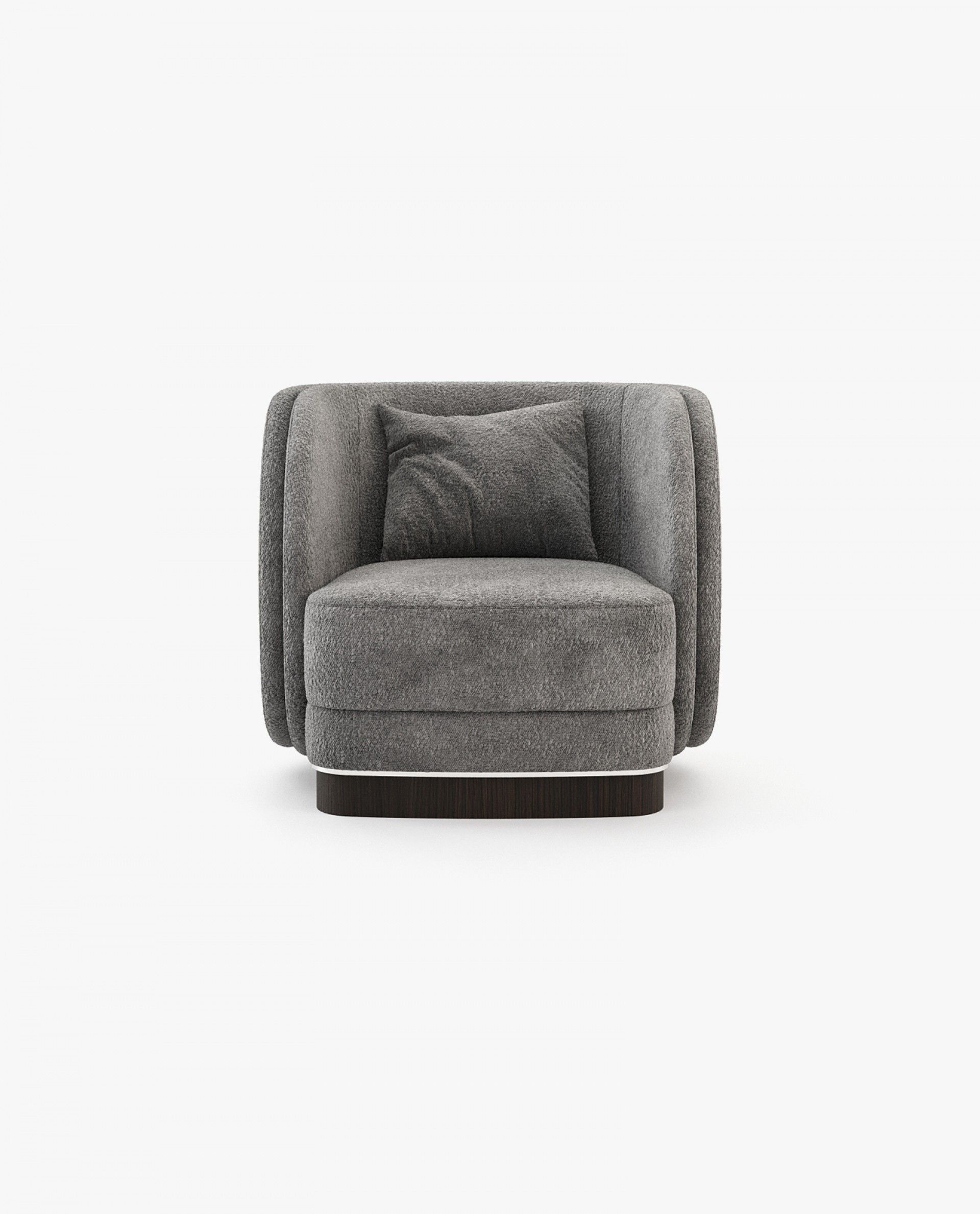 Ambrose -единственное в своем роде кресло с гладкой выпуклой спинкой. Он имеет неброское деревянное основание для поддержки величественного мягкого кресла с удобным сиденьем.