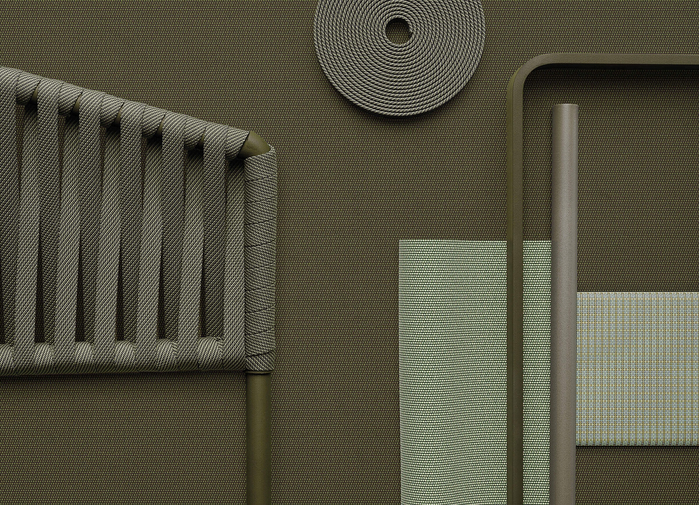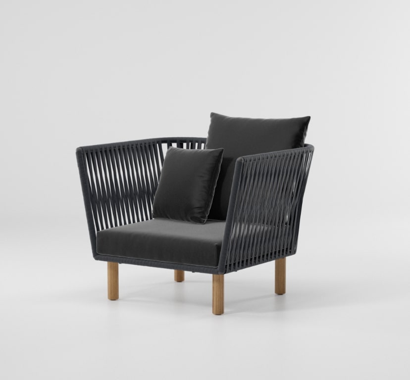 Для Kettal Bitta характерно сочетание алюминиевых и тиковых рам, сидений из плетеного полиэстера и удобных подушек, столешниц из тикового дерева или камня - и все это с использованием всех водонепроницаемых материалов. “Намерение дизайнера состояло в том, чтобы создать плотную оплетку, которая все еще пропускала бы воздух, напоминающую оплетку канатов, используемых для швартовки лодок (отсюда и название Bitta, что в переводе с итальянского означает "швартовка"), благодаря чему изделия выглядят легкими, но в то же время они выглядят прямо как уютные гнездышки в естественных тонах, в которых можно посидеть и расслабиться.” Новая отделка Bitta: Алюминиевые ножки, ножки из тикового дерева, канаты Bela, параллельные ткани