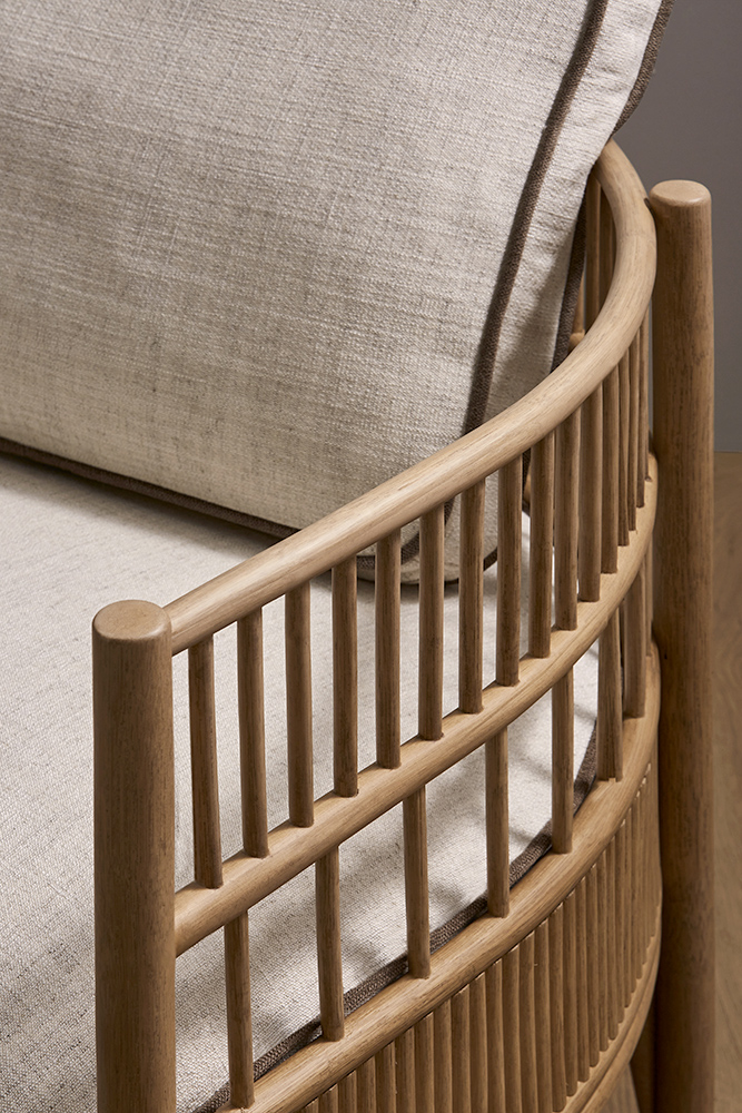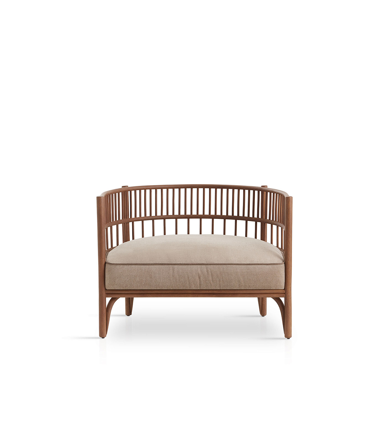 Кресло с каркасом из очищенного и тонированного натурального ротанга диаметром 32 мм/1,26 дюйма. Спинка и боковины изготовлены из очищенного и тонированного натурального ротанга диаметром 10 мм/0,4 дюйма. Отделано трехступенчатым покрытием на водной основе (краска, базовый слой и верхний слой), обладающим высокой устойчивостью к солнечному излучению благодаря УФ-фильтрам. Возможность персонализации с помощью широкого ассортимента тканей. Защитные колпачки.