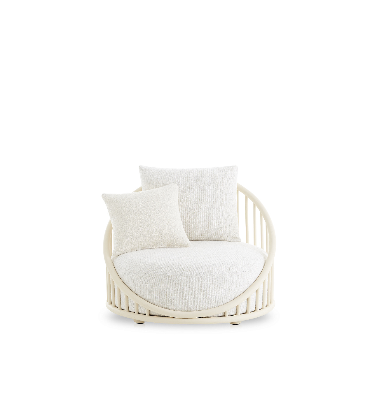 Кресло со структурой из очищенного и тонированного натурального ротанга калибра 34 мм. Спинка из очищенного и тонированного натурального ротанга калибра 20 мм. Покрыт трехфазным покрытием (краситель, фон и отделка) с УФ-фильтрами, что делает его высокоустойчивым к солнечному излучению. Используемая отделка на водной основе. Возможность персонализации с помощью широкого ассортимента высокотехнологичных технических тканей с высокими эксплуатационными характеристиками. Защитные шпильки. 1 декоративная подушка размером 45х45 см в комплекте.