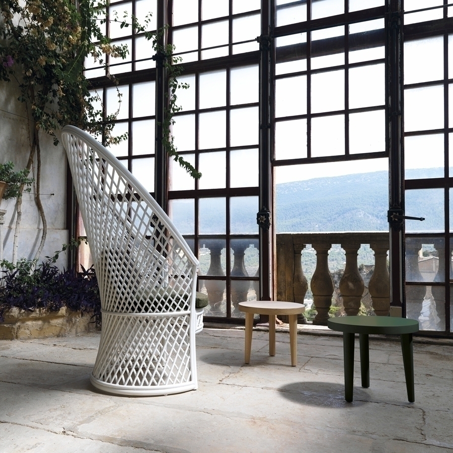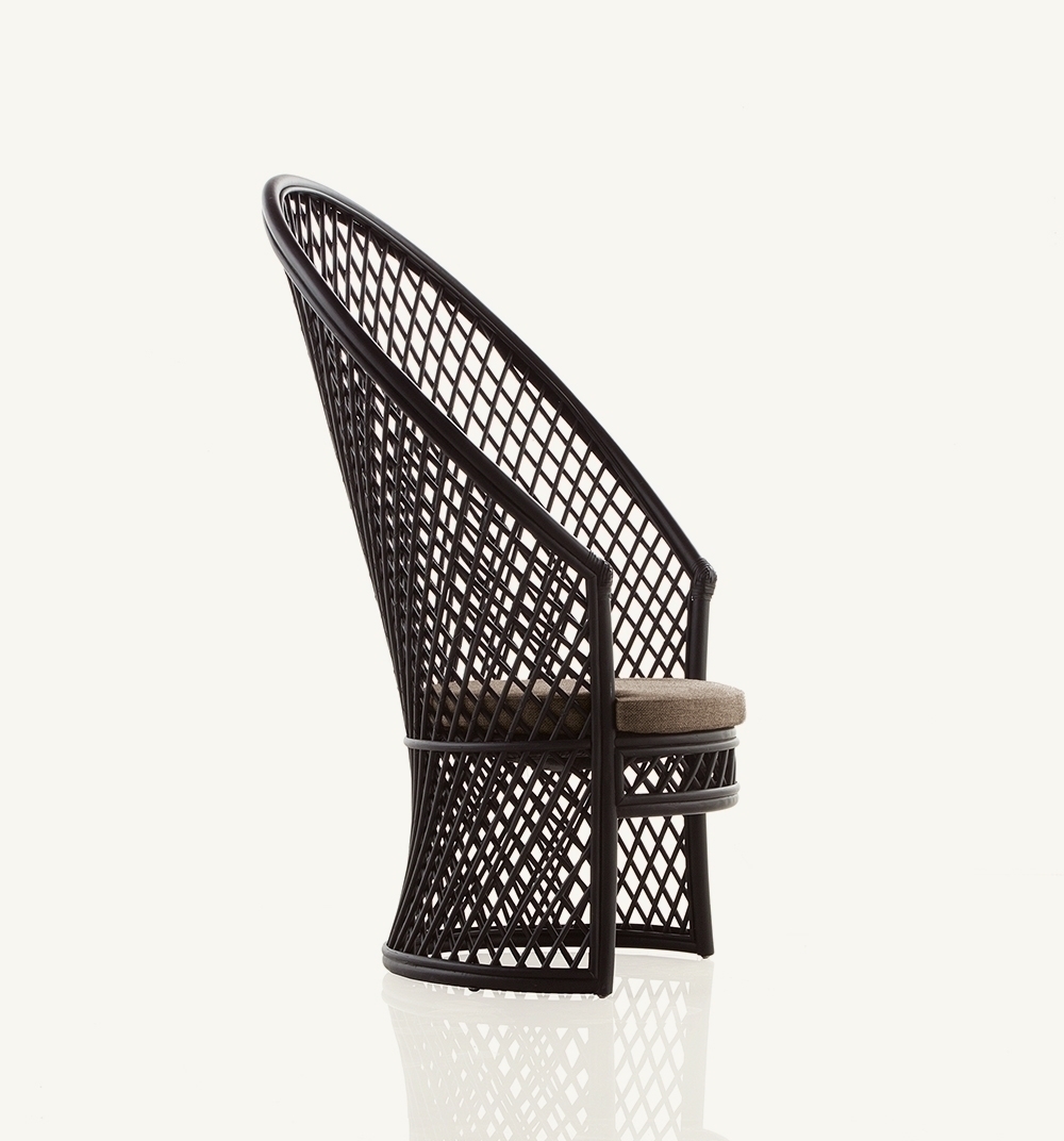 Кресло со структурой из очищенного и тонированного натурального ротанга диаметром 32 мм/1,26 дюйма. Спинка изготовлена из очищенного и тонированного натурального ротанга диаметром 10 мм. Покрыт трехэтапным покрытием (краситель, базовое покрытие и верхнее покрытие), обладающим высокой устойчивостью к солнечному излучению благодаря УФ-фильтрам. Дополнительная подушка с обивкой из натуральной или искусственной кожи, натуральной шерсти, бархата и полипропилена. Защитные колпачки со съемными войлочными пластиковыми вставками.