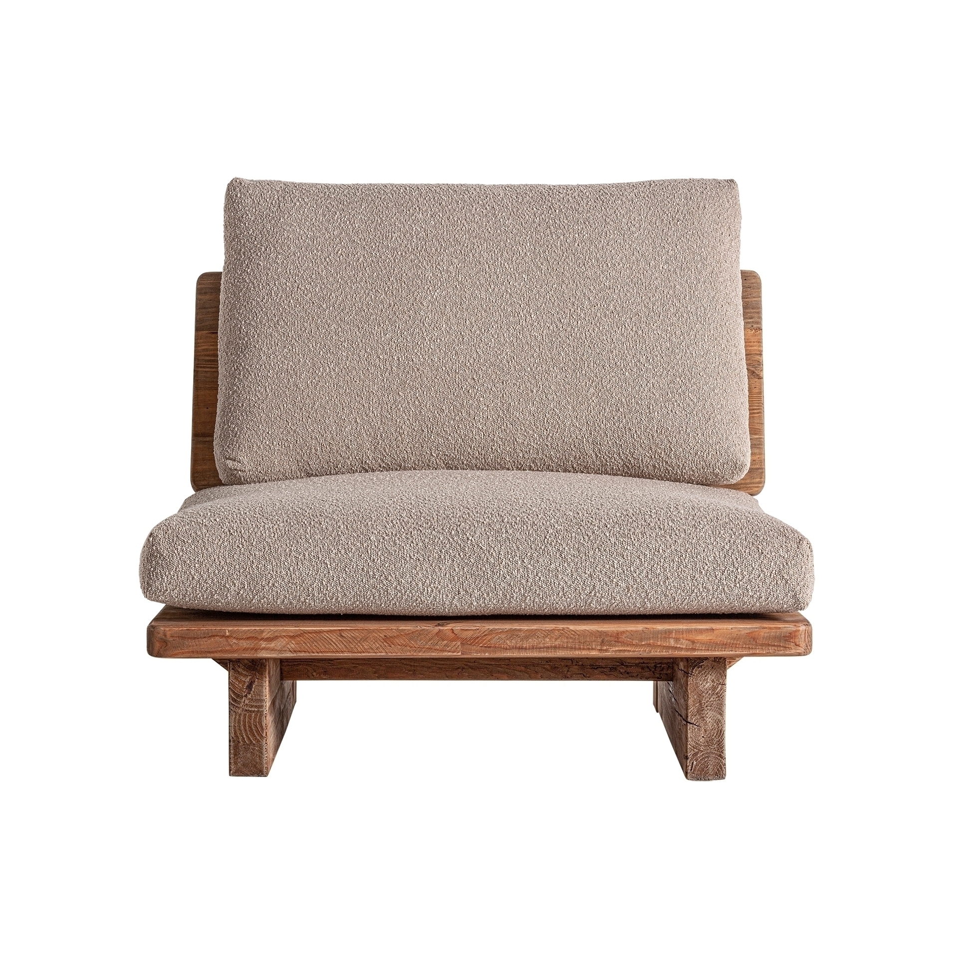Кресло Givry, натурального цвета, современный стиль. Изготовлен из переработанной сосновой древесины в сочетании с полиэстером и пеной.