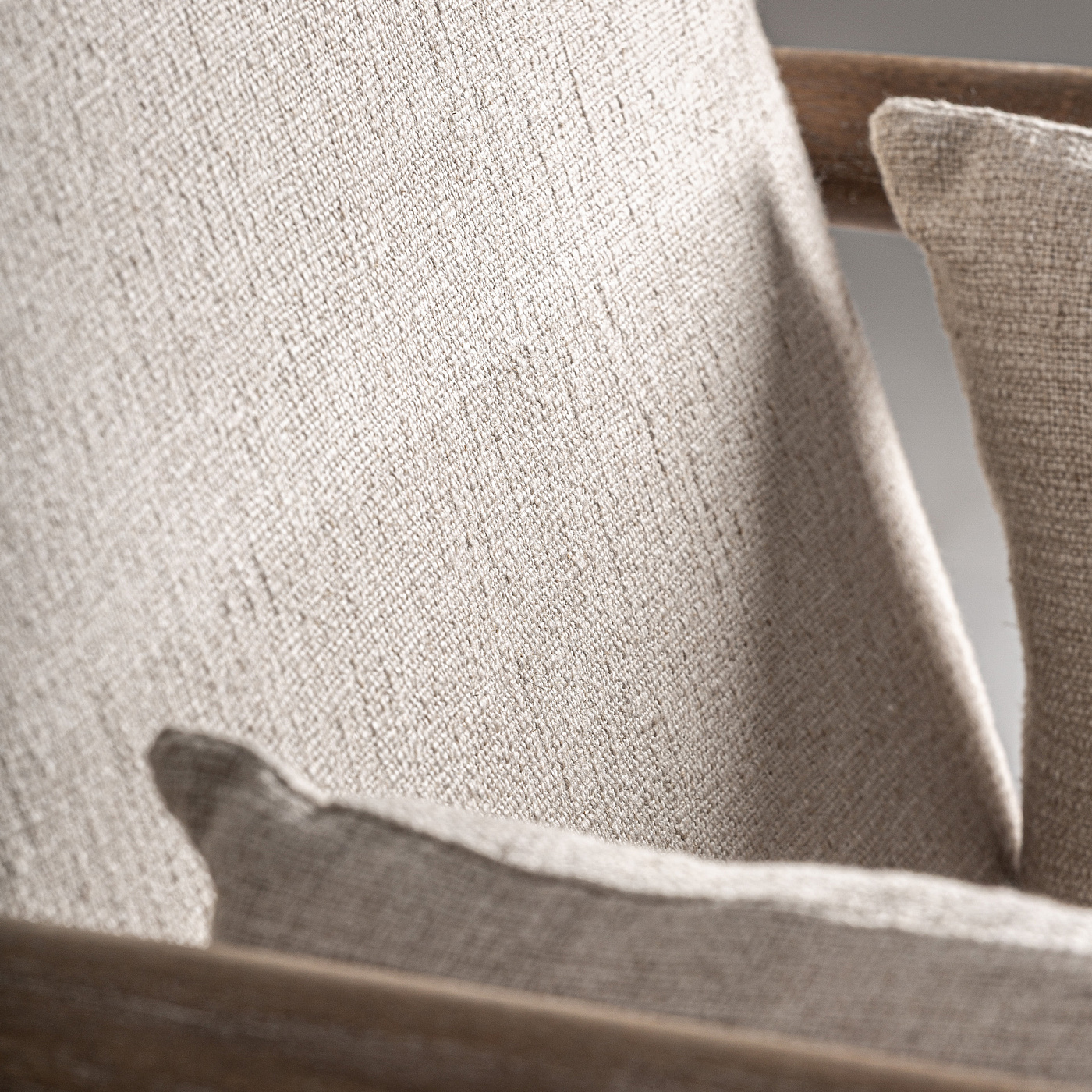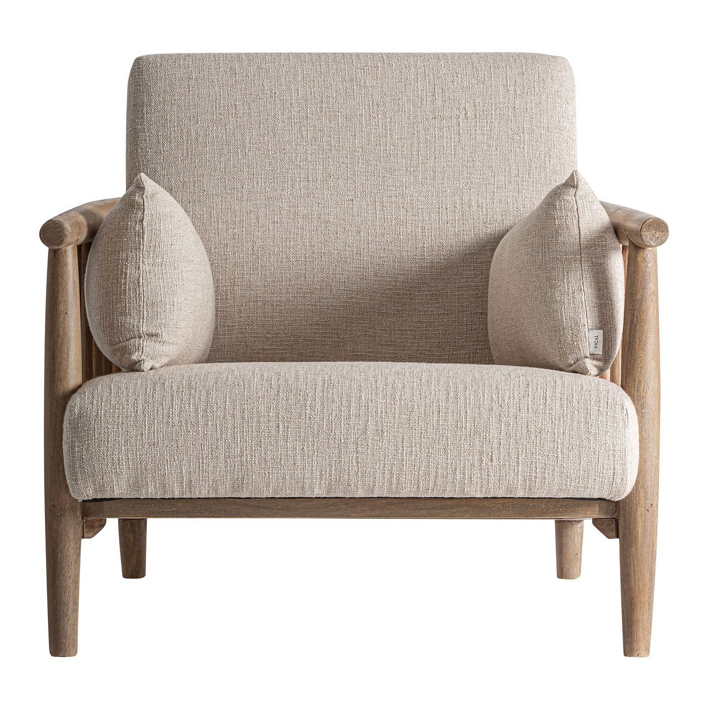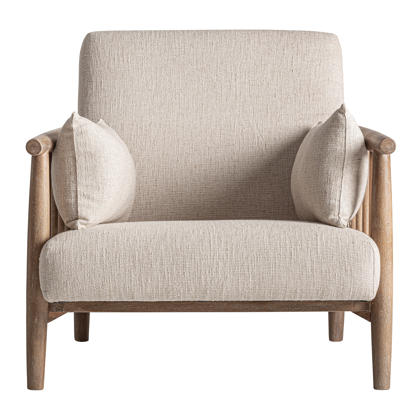 Кресло Grebin в современном стиле, изготовлено из берёзовой древесины коричневого цвета в сочетании с бежевым хлопком. Чехол съёмный. Ширина: 84 см, Глубина: 90 см, Высота: 84 см
