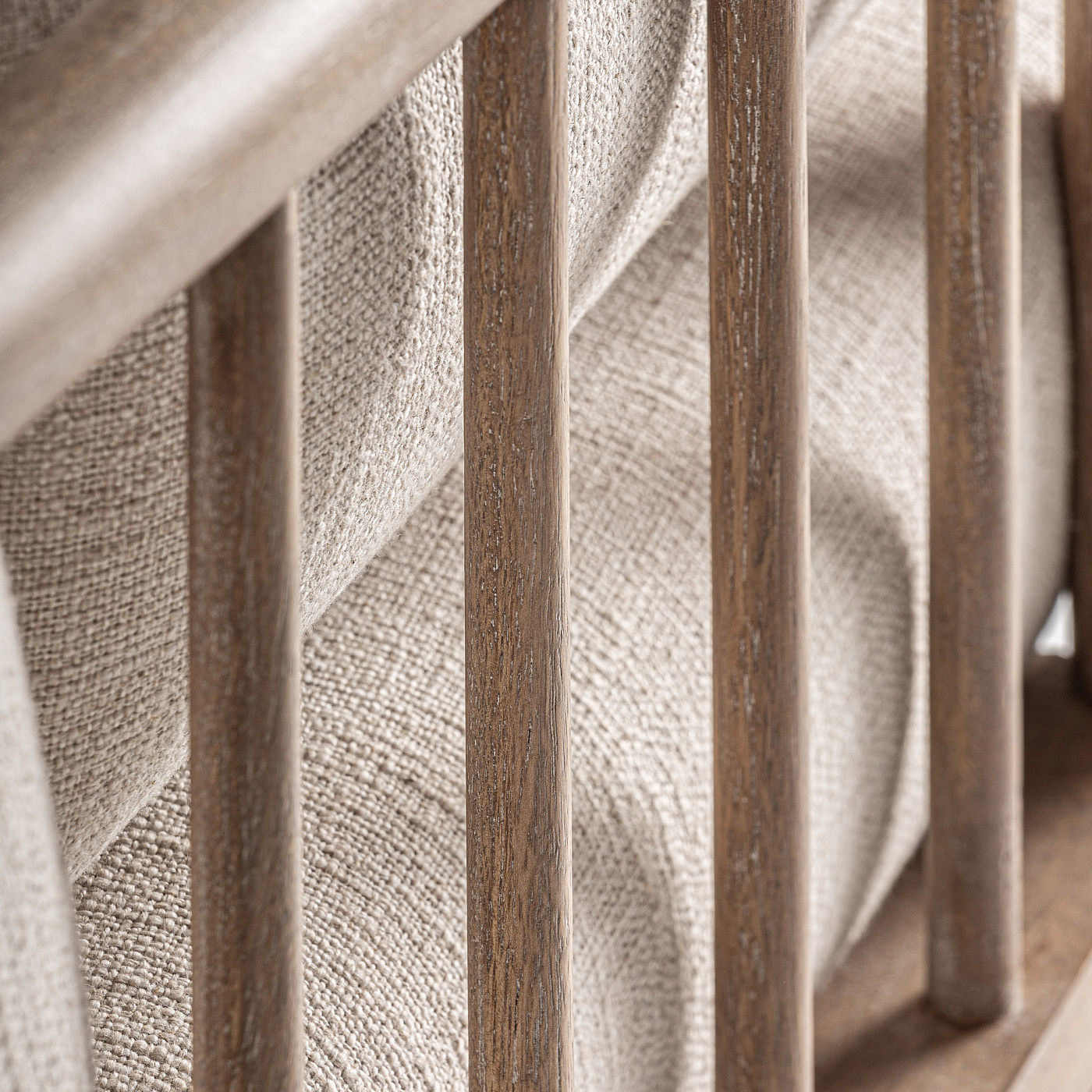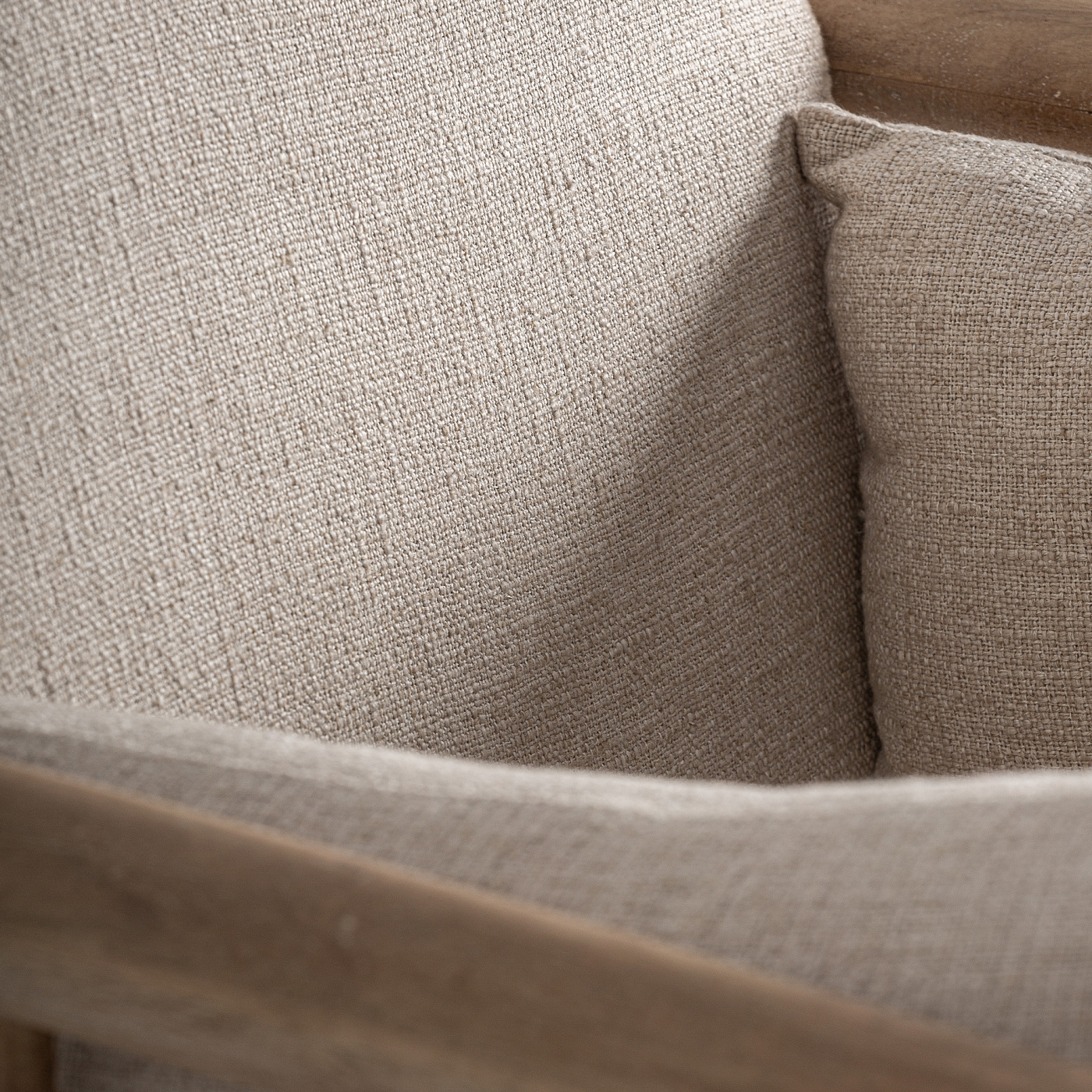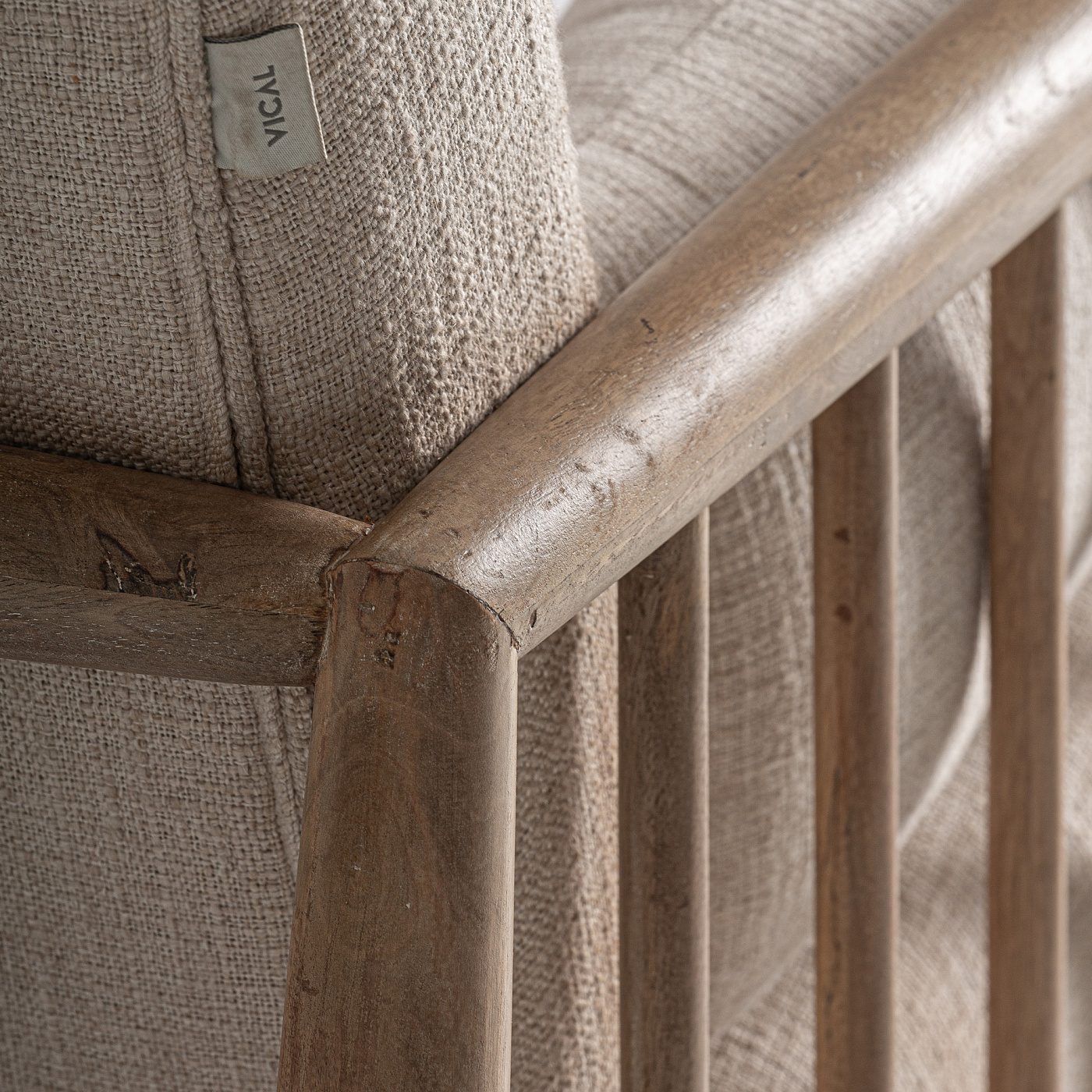 Кресло Grebin в современном стиле, изготовлено из берёзовой древесины коричневого цвета в сочетании с бежевым хлопком. Чехол съёмный. Ширина: 84 см, Глубина: 90 см, Высота: 84 см