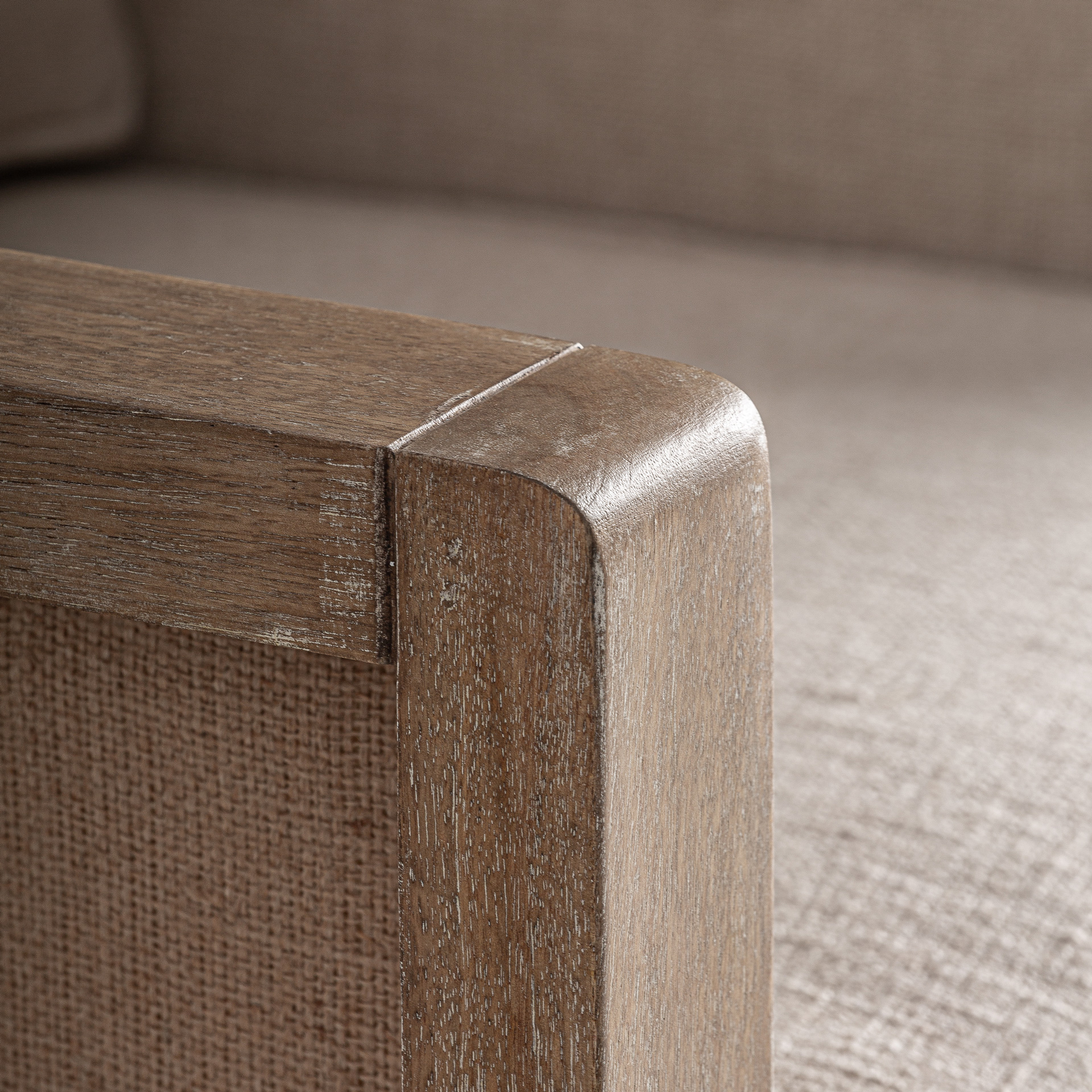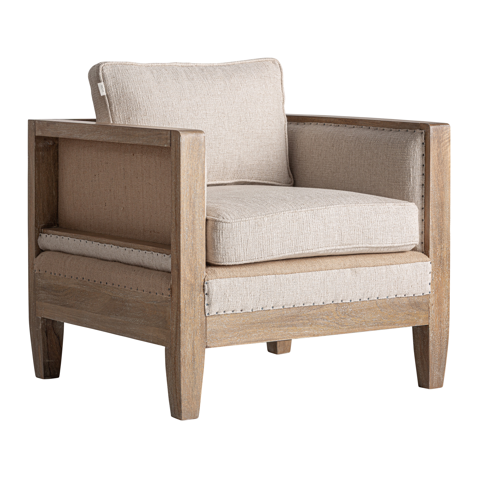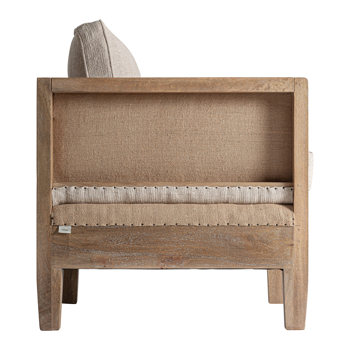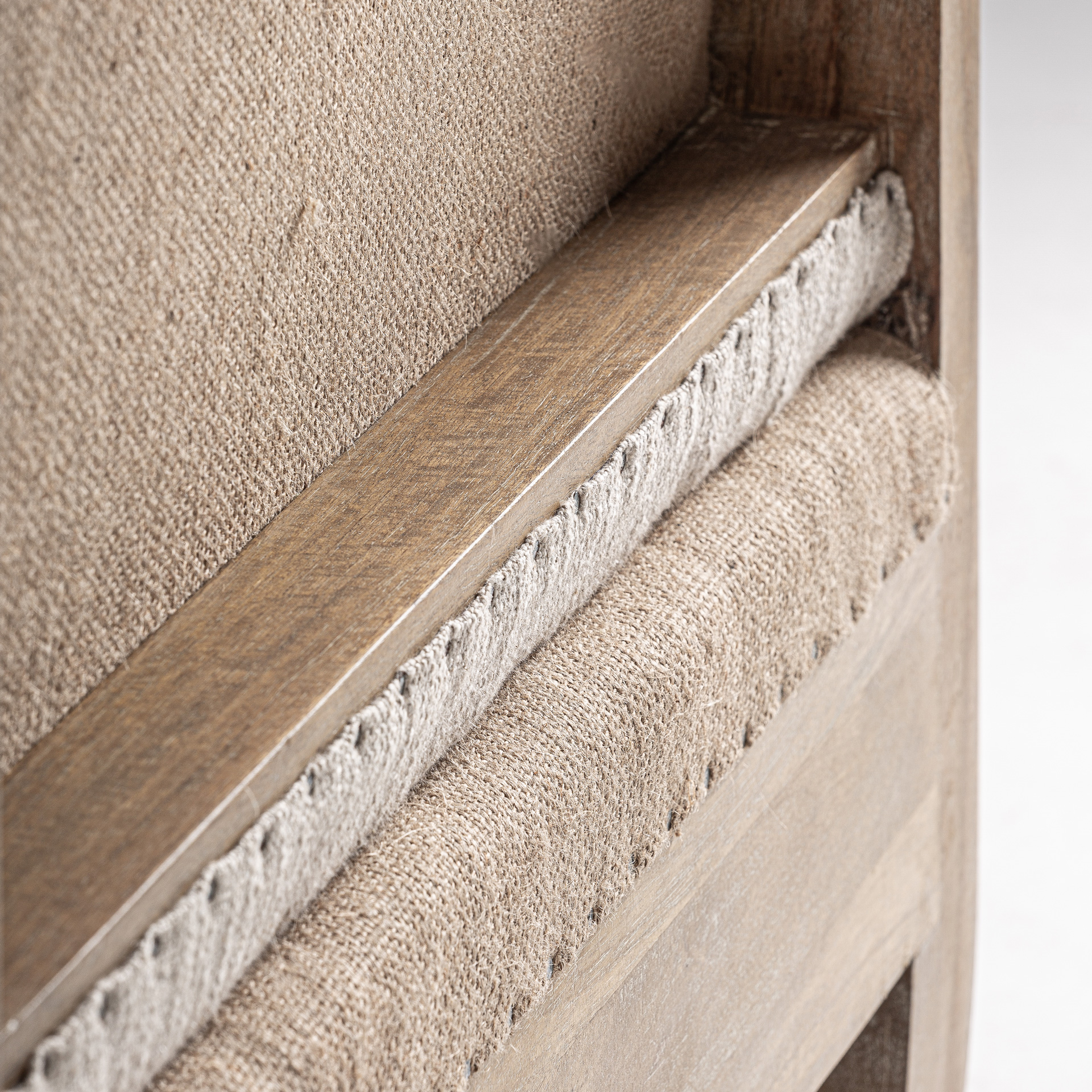 Кресло Grube в классическом стиле, изготовлено из берёзы коричневого цвета в сочетании с бежевым льном и джутом. Чехол съёмный. Ширина: 80 см, Глубина: 74 см, Высота: 87 см