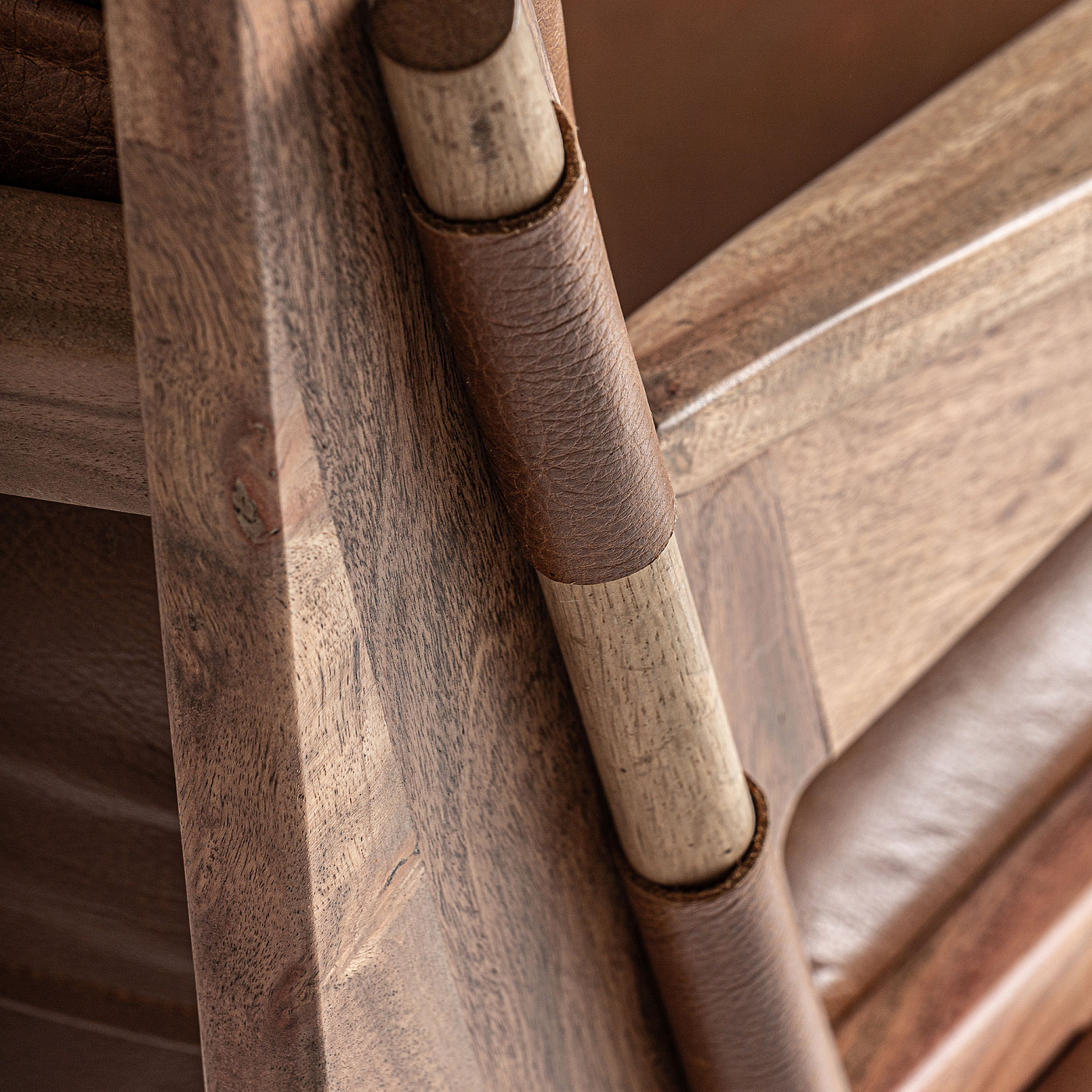 Кресло Melle коричневого цвета в стиле арт-деко. Изготовлен из кожи в сочетании с деревом акации. Съемное изделие. Ширина: 74 см, Глубина: 76 см, Высота: 78 см