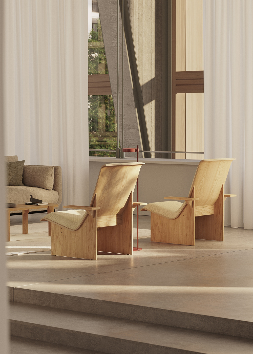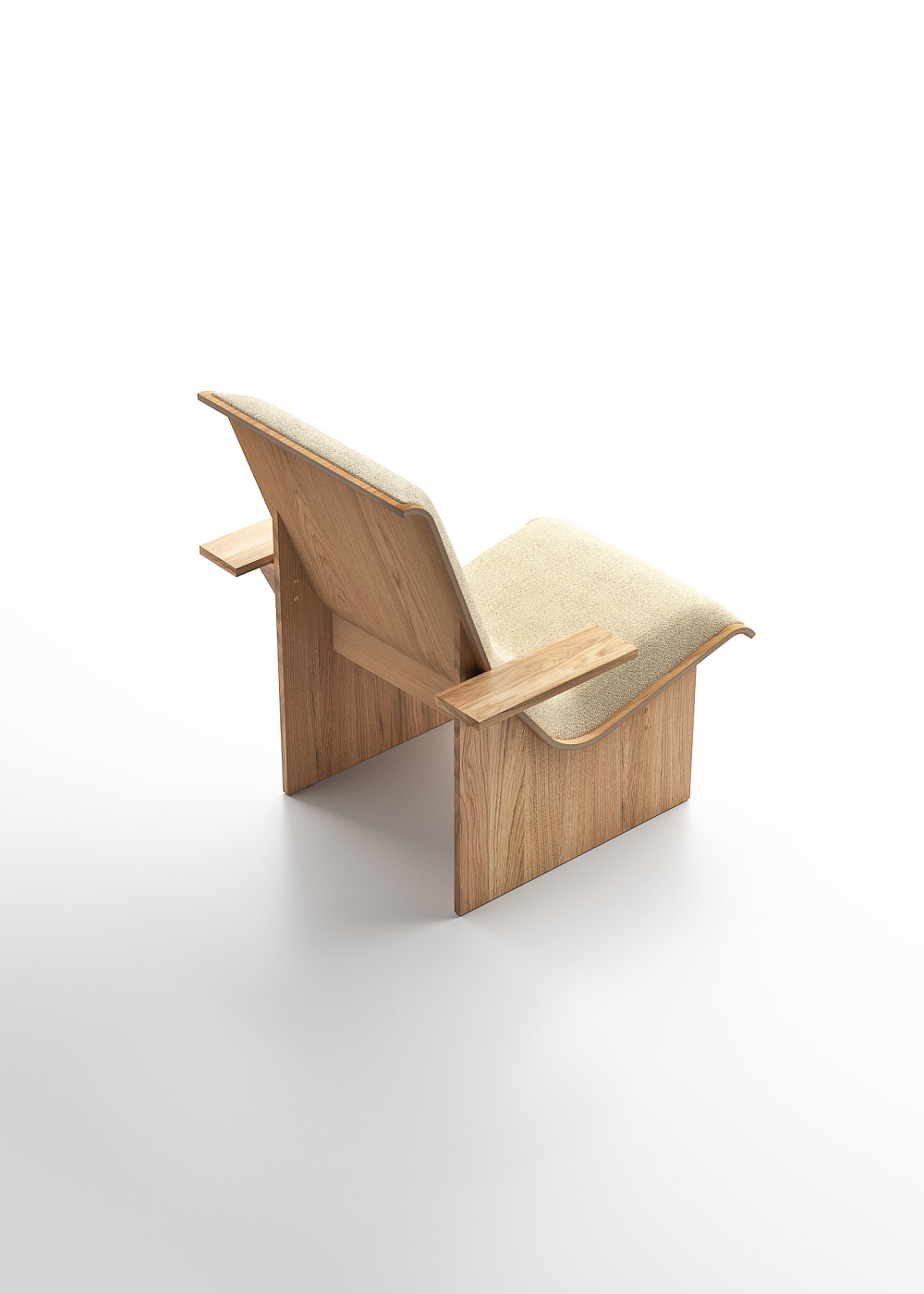 Кресло Eamy светло-коричневое из шпона ясеня с отделкой венге