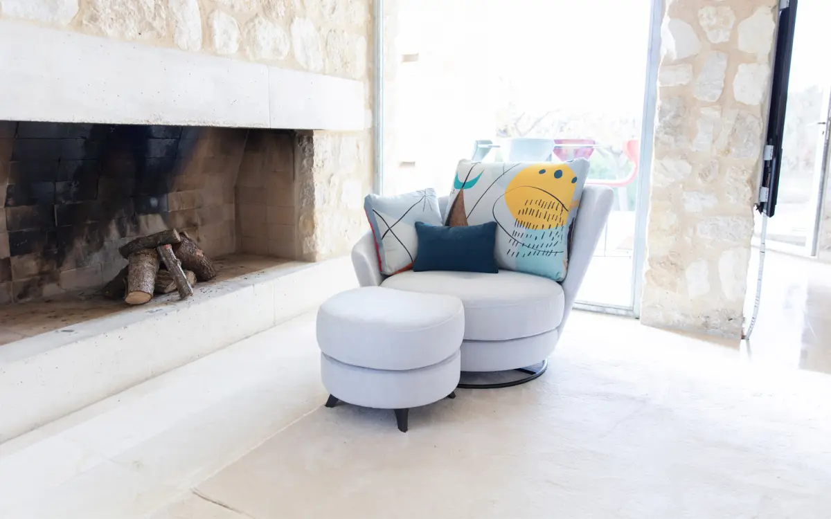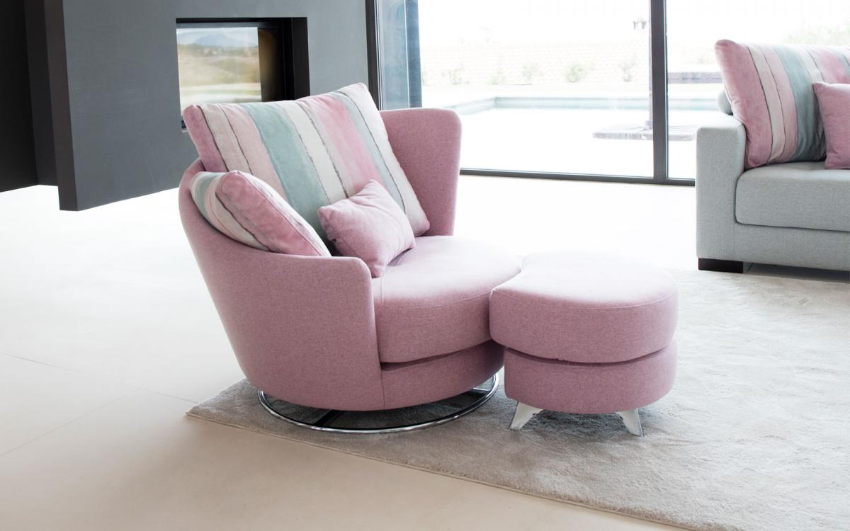 Кресло Roxane поворотное с пуфом на металлических ножках