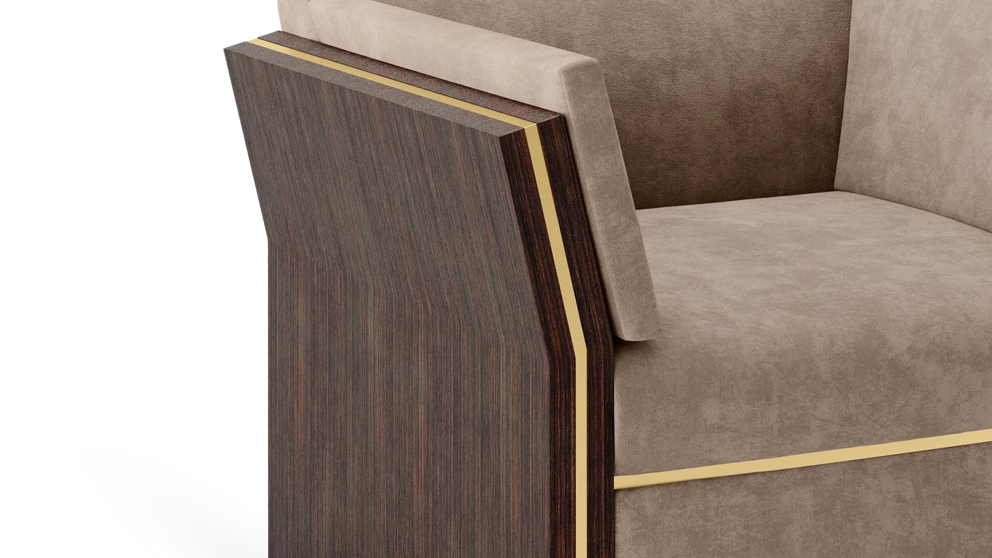 В кресле UDAIPUR используются поистине инновационные материалы. Его точно скошенные подлокотники изготовлены из деревянного шпона с толстым металлическим швом. Они легко подвешивают сиденье с мягкой обивкой, в то время как боковые подушки обеспечивают дополнительный комфорт и поддержку.