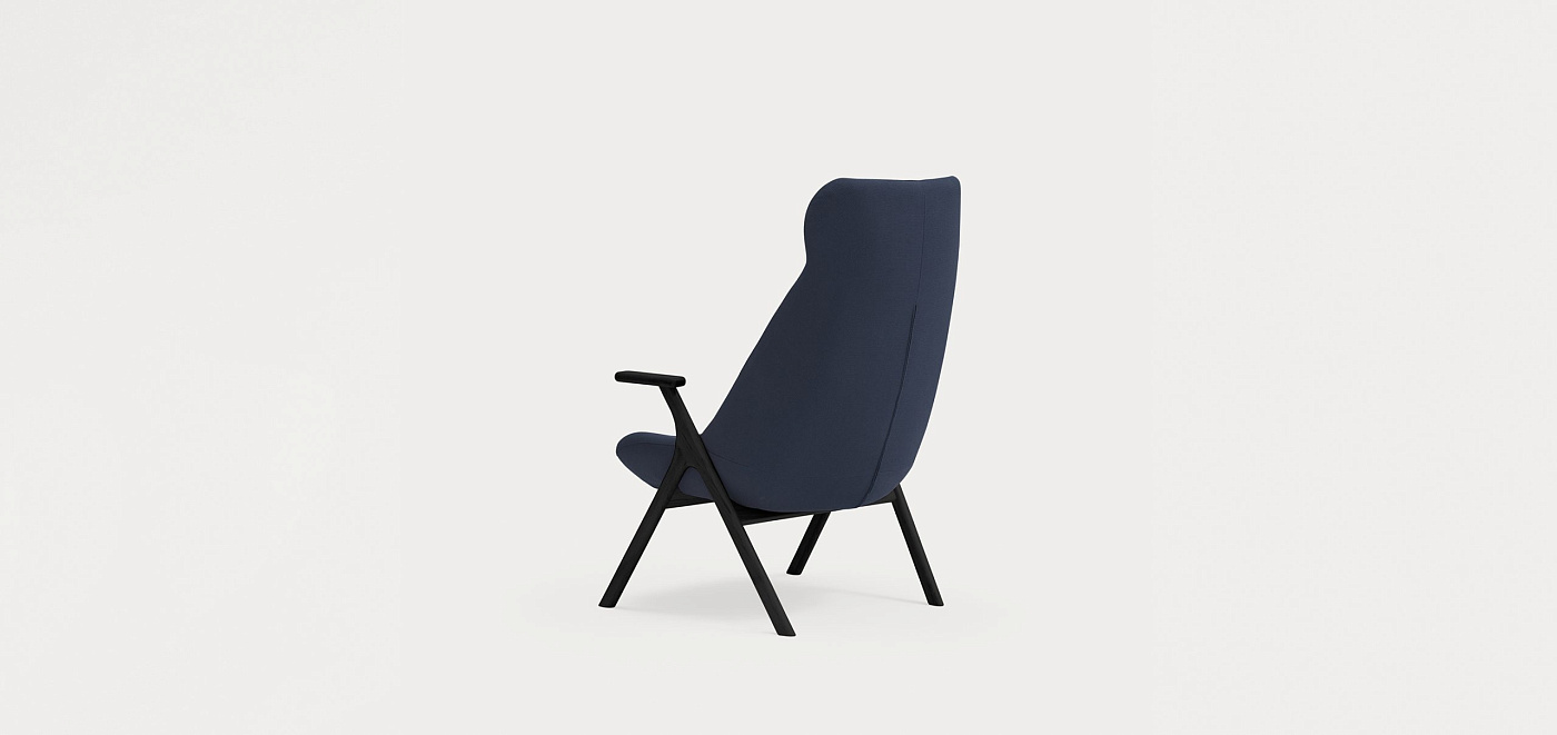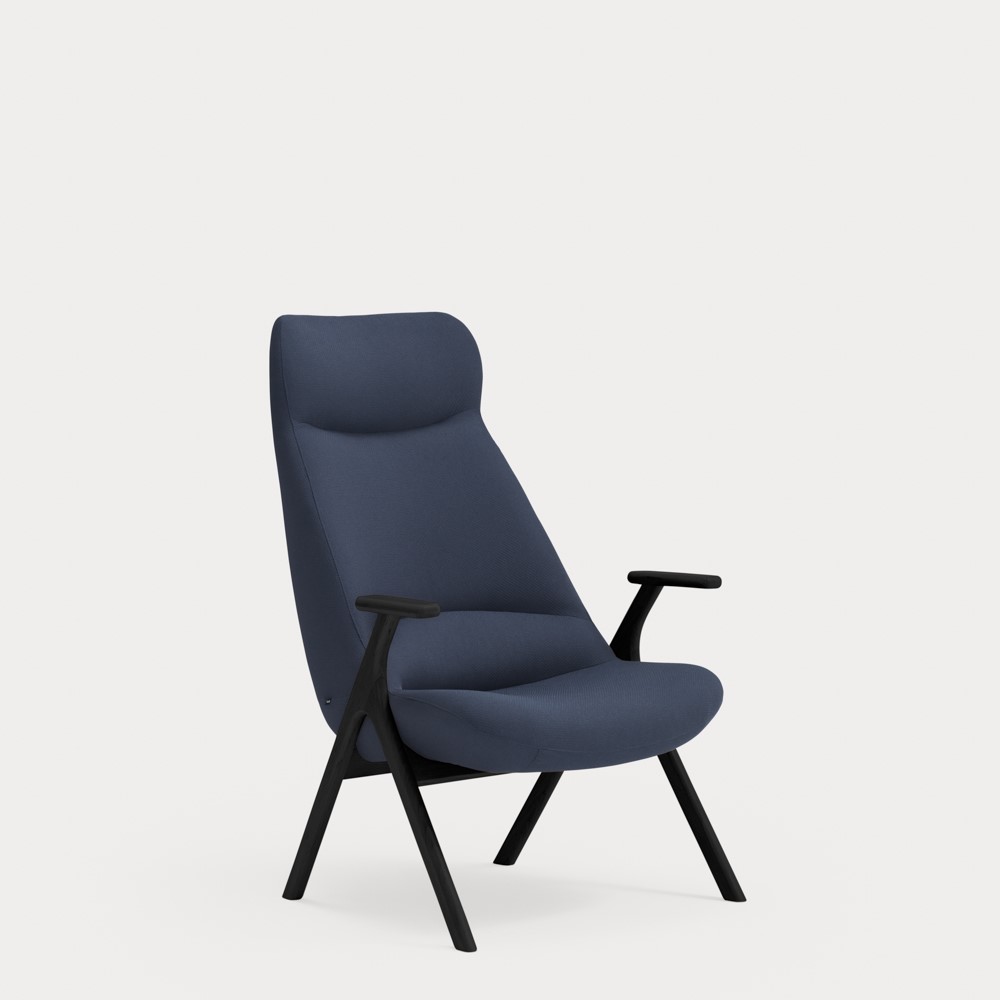 Кресло высокое Dins синее с каркасом из черного бука