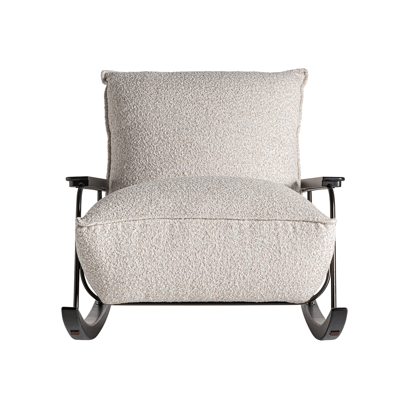 Кресло-качалка Zwalm в современном стиле, изготовлено из черной сосны в сочетании с бежевым полиэстером с пятнистой отделкой и черным ясенем.