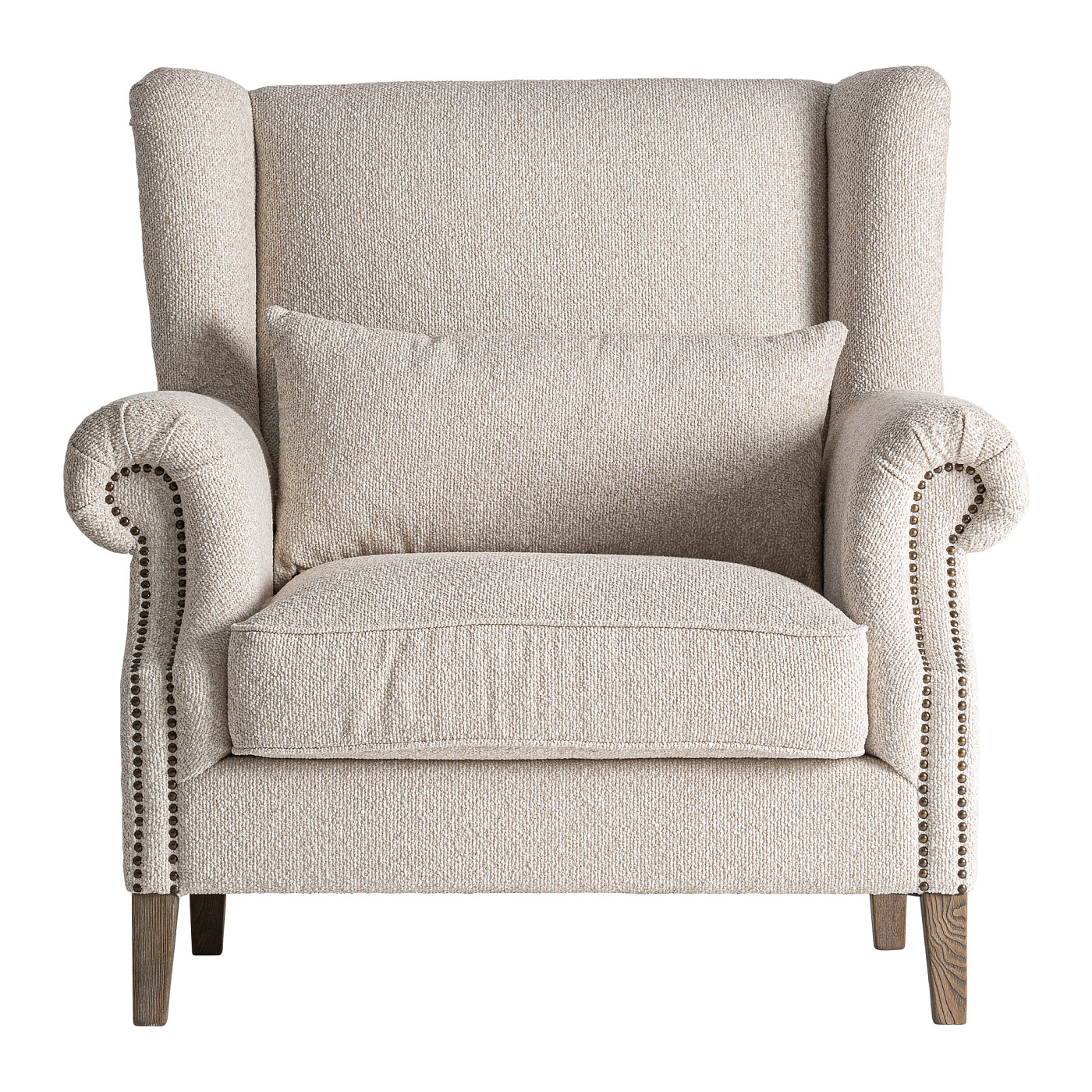 Кресло Leiston в классическом стиле, изготовлено из коричневого ясеня в сочетании с кремовым полиэстером. Изделие разборное. Ширина: 108 см, Глубина: 93 см, Высота: 109 см